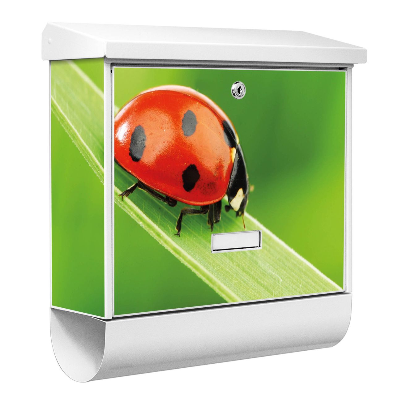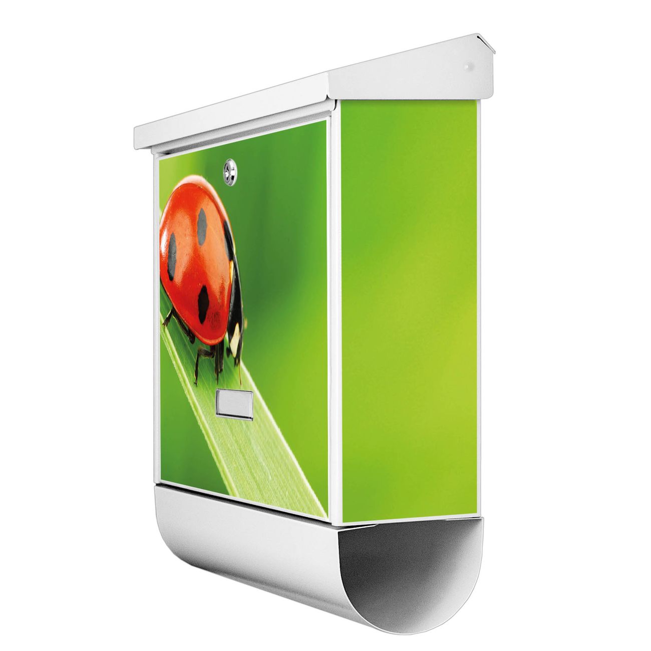 Der BURG-WÄCHTER Stahl Briefkasten mit Marienkäfer Motiv bietet Ihnen mit seinem Fassungsvermögen genügend Platz auch für große A4 Sendungen und Zeitschriften. Das integrierte Regendach schützt Ihre Post vor dem Eindringen von Regen.