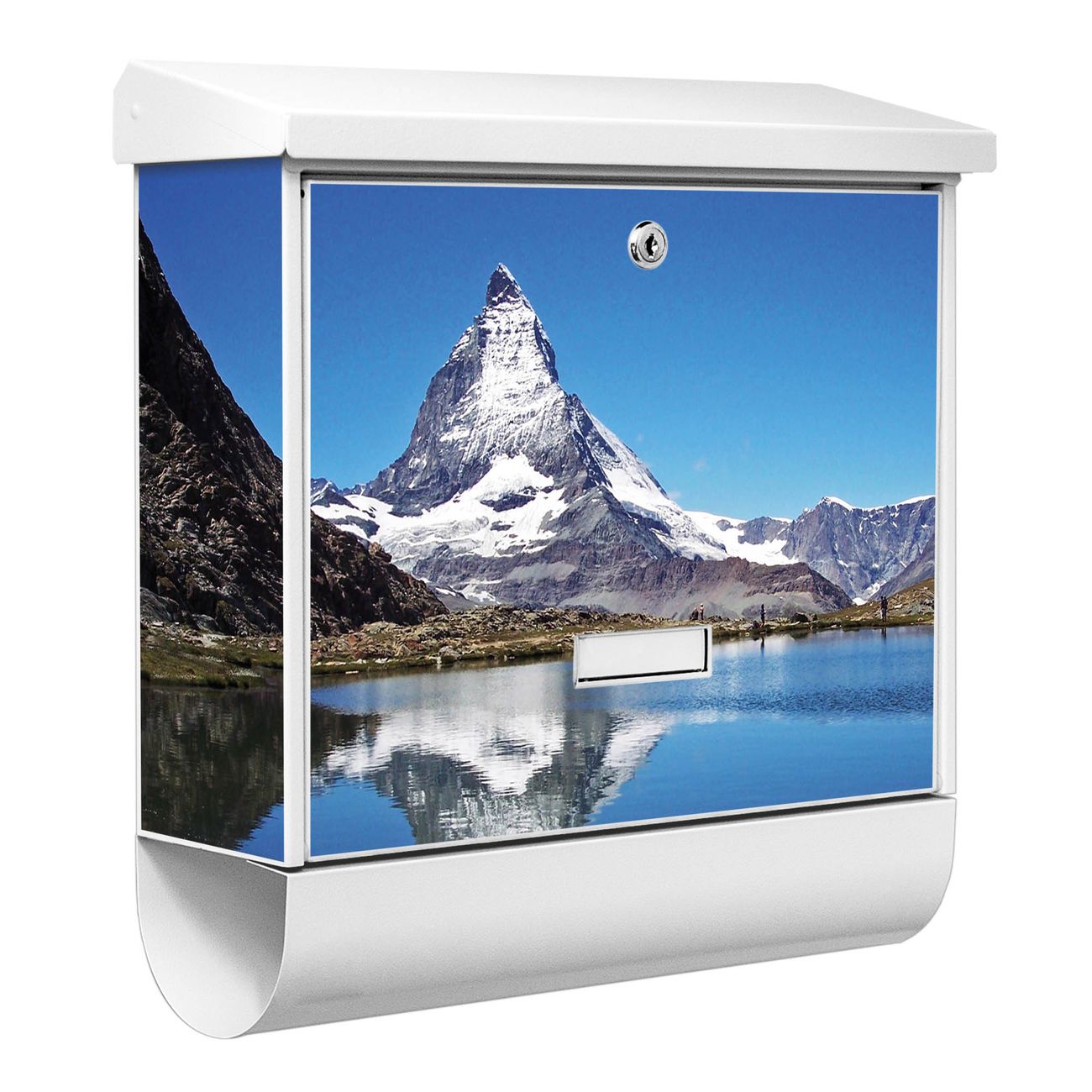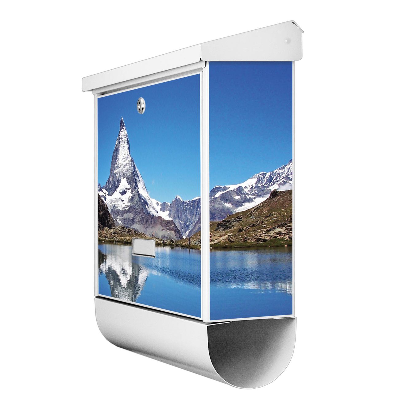 Der BURG-WÄCHTER Stahl Briefkasten mit Matterhorn Motiv bietet Ihnen mit seinem Fassungsvermögen genügend Platz auch für große A4 Sendungen und Zeitschriften. Das integrierte Regendach schützt Ihre Post vor dem Eindringen von Regen.