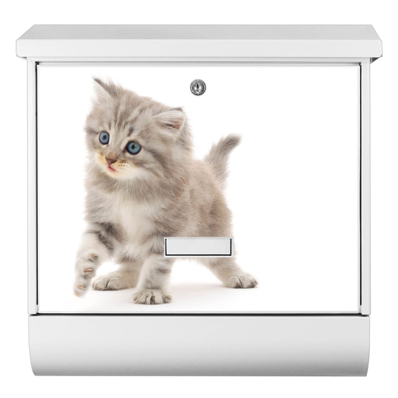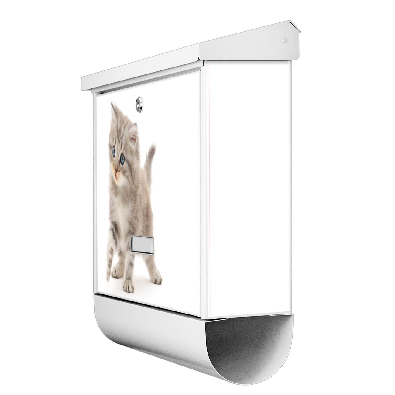 Der BURG-WÄCHTER Stahl Briefkasten mit Miau Motiv bietet Ihnen mit seinem Fassungsvermögen genügend Platz auch für große A4 Sendungen und Zeitschriften. Das integrierte Regendach schützt Ihre Post vor dem Eindringen von Regen.