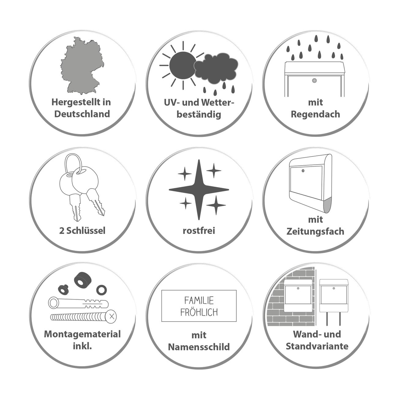 Der Motivbriefkasten hat ein sehr ansprechendes und zeitloses Design. Unsere Motivpalette hält jede Menge Varianten bereit, ob klassisch, modern, verspielt oder witzig - für jeden haben wir das passende Motiv parat. Der Briefkasten ist Ihr Aushängeschild, heben Sie Sich ab ohne auf Funktionalität zu verzichten.