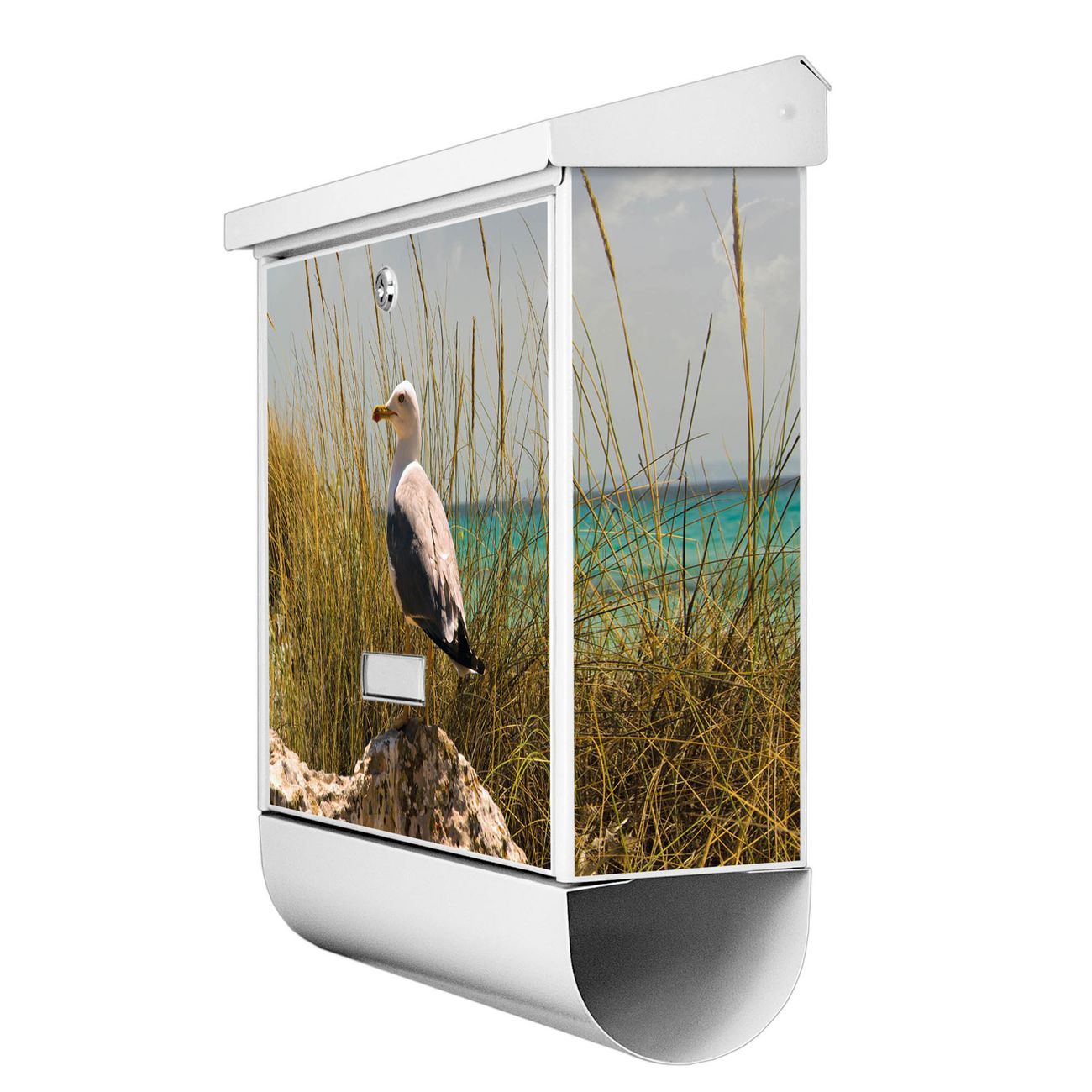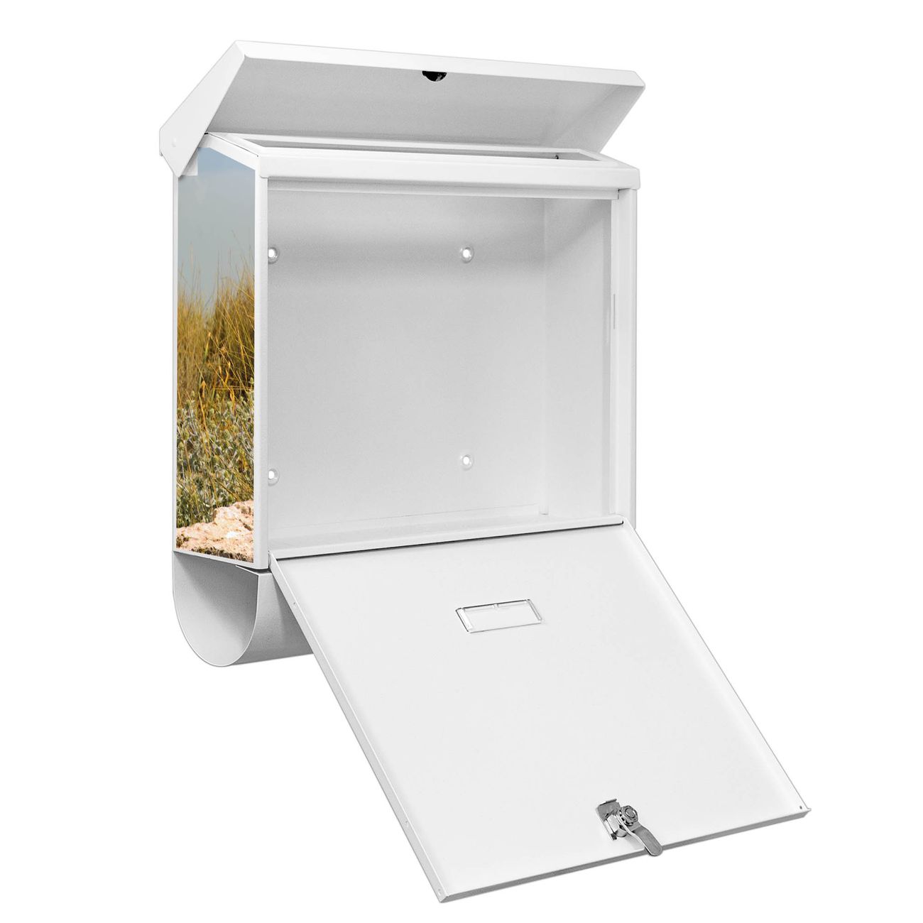 Sie können diesen Briefkasten sowohl als Wandbriefkasten montieren oder mit dem passenden Ständer als Standbriefkasten einbetonieren. Die gestaltete Motivfolie ist absolut wetterfest, UV-beständig und ein zusätzliches Schutzlaminat bewahrt Ihren Briefkasten vor unnötigen Kratzern. Das Namensschild kann frei beschriftet werden.