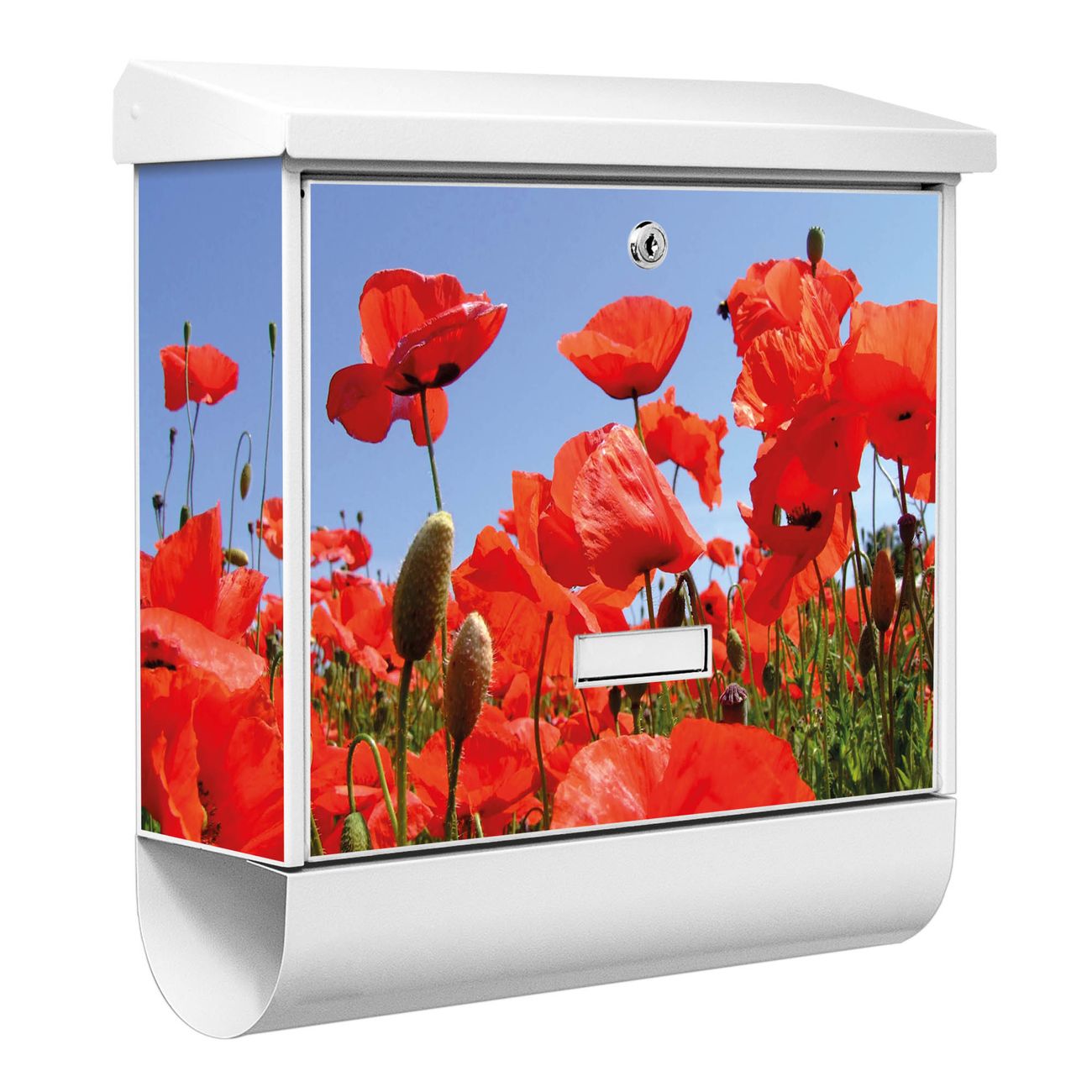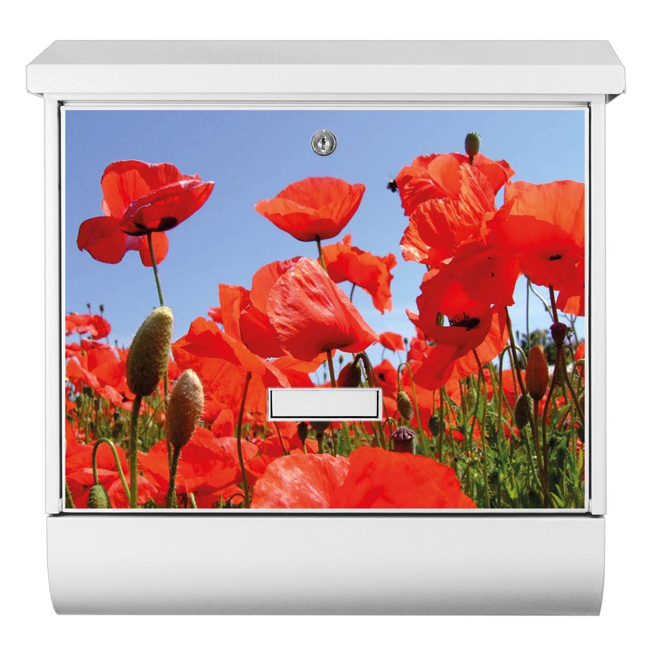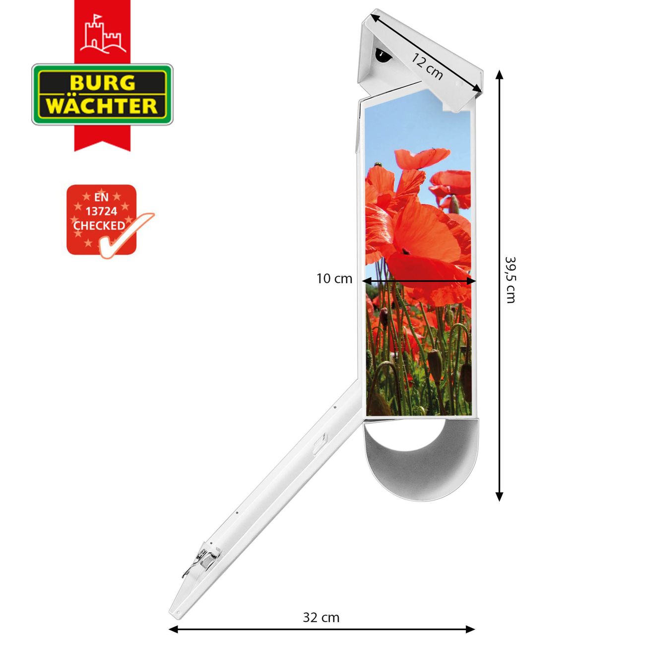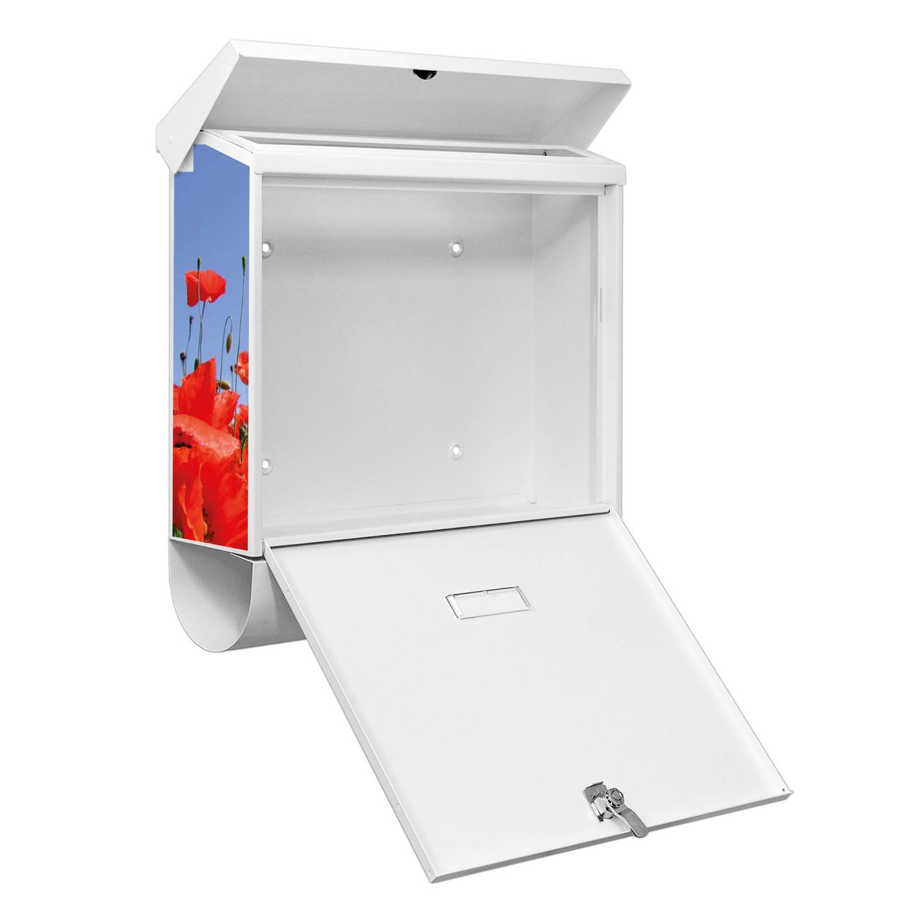 Der BURG-WÄCHTER Stahl Briefkasten mit Mohnblumen Motiv bietet Ihnen mit seinem Fassungsvermögen genügend Platz auch für große A4 Sendungen und Zeitschriften. Das integrierte Regendach schützt Ihre Post vor dem Eindringen von Regen.