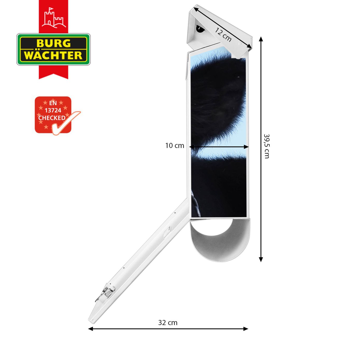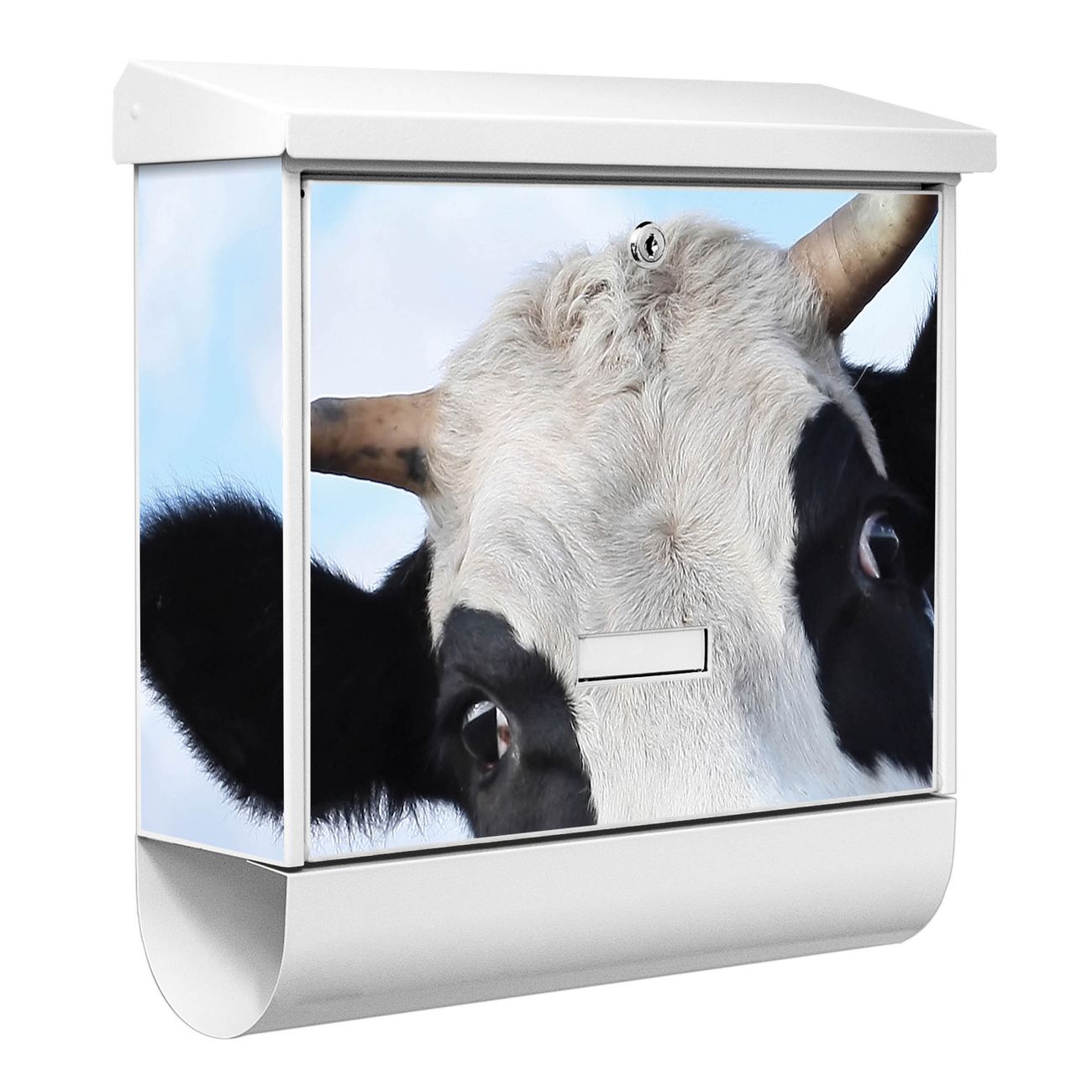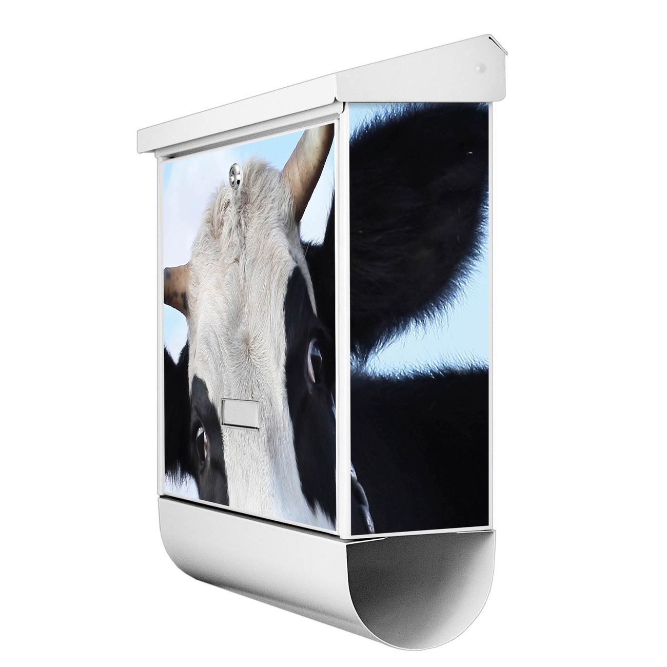 Der BURG-WÄCHTER Stahl Briefkasten mit Muh Motiv bietet Ihnen mit seinem Fassungsvermögen genügend Platz auch für große A4 Sendungen und Zeitschriften. Das integrierte Regendach schützt Ihre Post vor dem Eindringen von Regen.