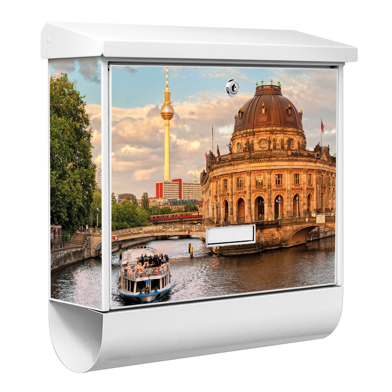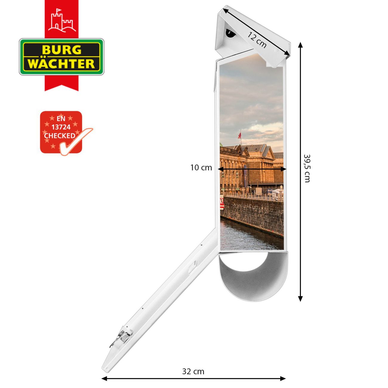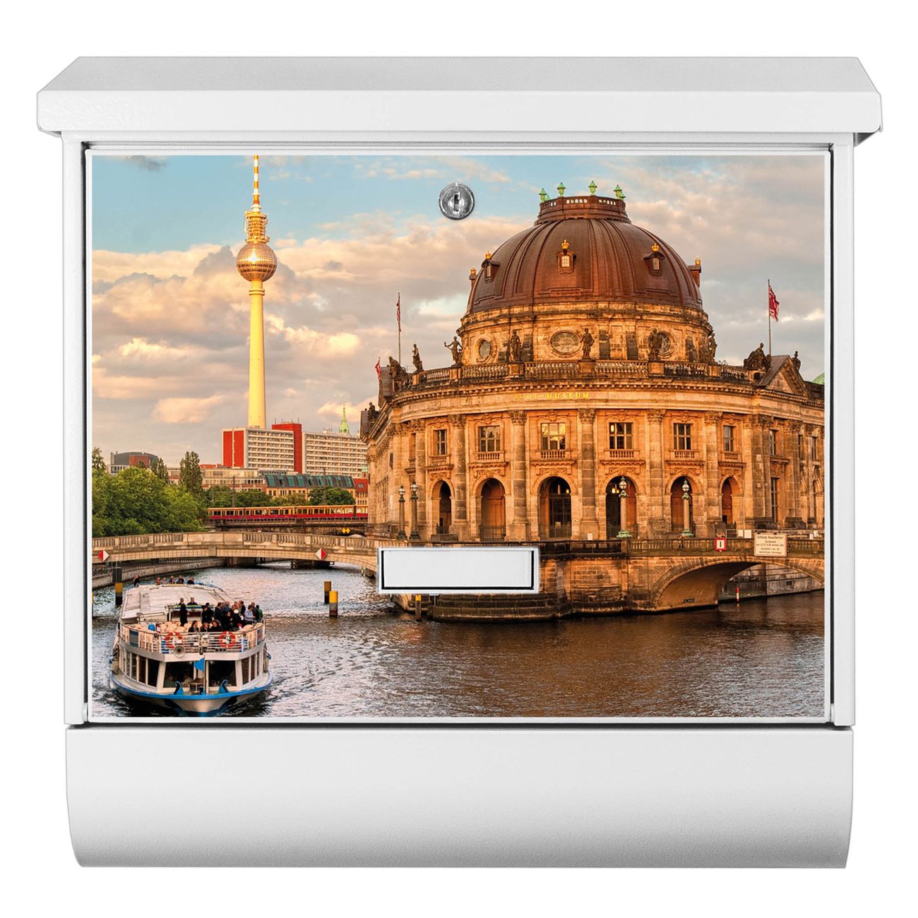 Der BURG-WÄCHTER Stahl Briefkasten mit Museumsinsel Motiv bietet Ihnen mit seinem Fassungsvermögen genügend Platz auch für große A4 Sendungen und Zeitschriften. Das integrierte Regendach schützt Ihre Post vor dem Eindringen von Regen.