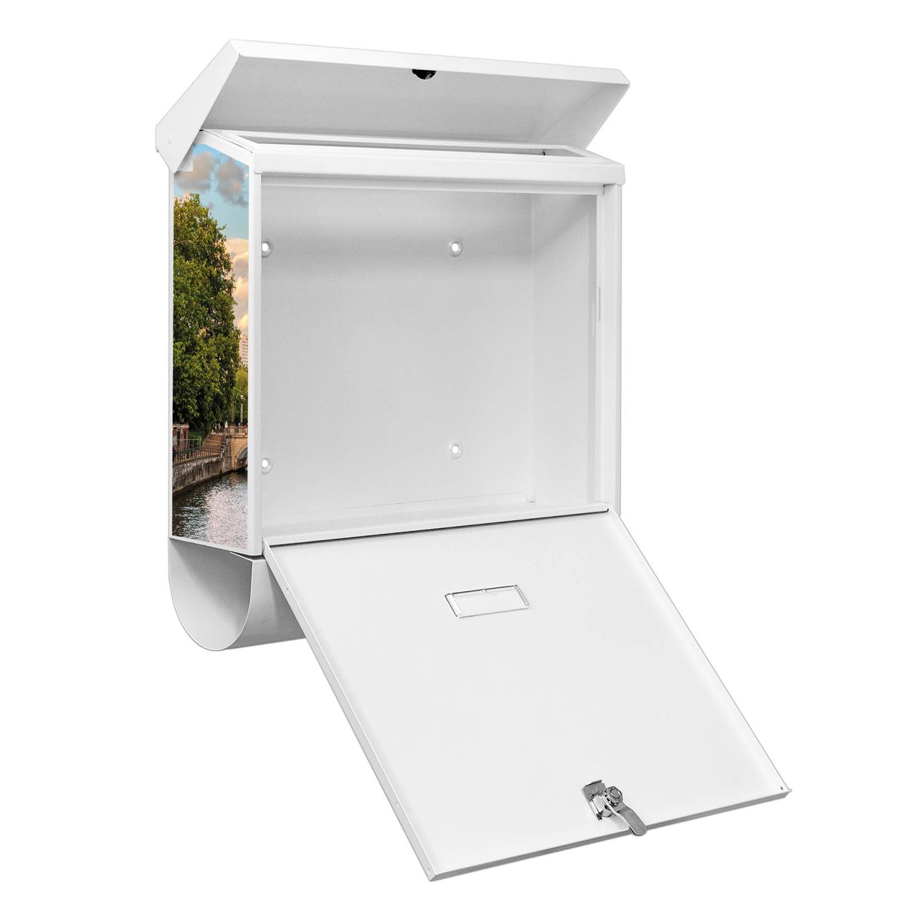 Sie können diesen Briefkasten sowohl als Wandbriefkasten montieren oder mit dem passenden Ständer als Standbriefkasten einbetonieren. Die gestaltete Motivfolie ist absolut wetterfest, UV-beständig und ein zusätzliches Schutzlaminat bewahrt Ihren Briefkasten vor unnötigen Kratzern. Das Namensschild kann frei beschriftet werden.