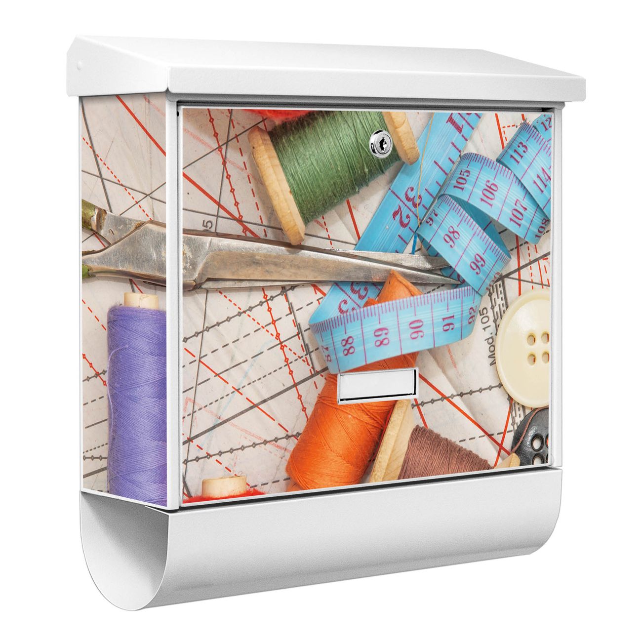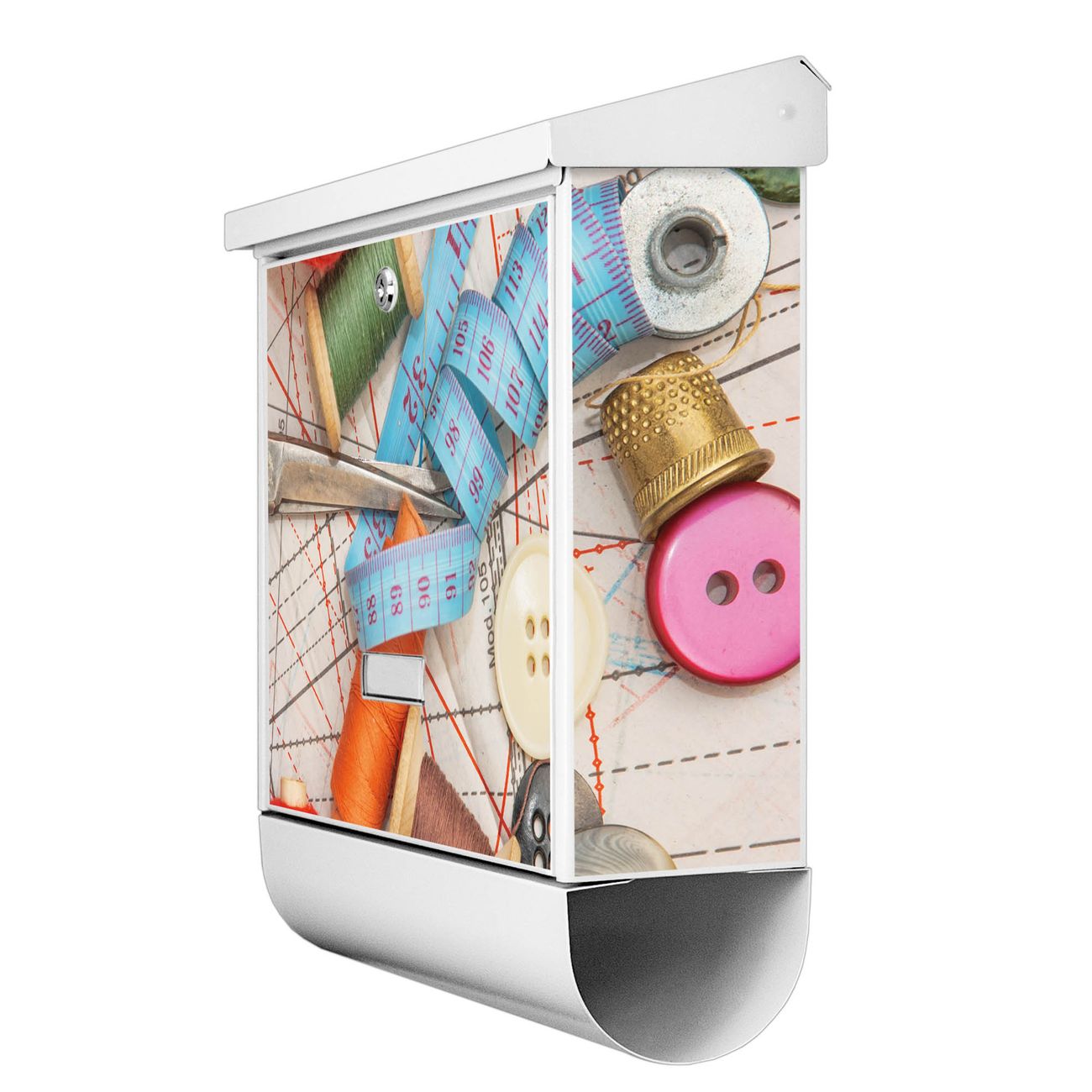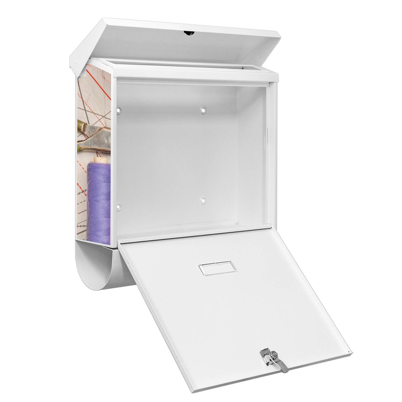 Der BURG-WÄCHTER Stahl Briefkasten mit Nähen Motiv bietet Ihnen mit seinem Fassungsvermögen genügend Platz auch für große A4 Sendungen und Zeitschriften. Das integrierte Regendach schützt Ihre Post vor dem Eindringen von Regen.
