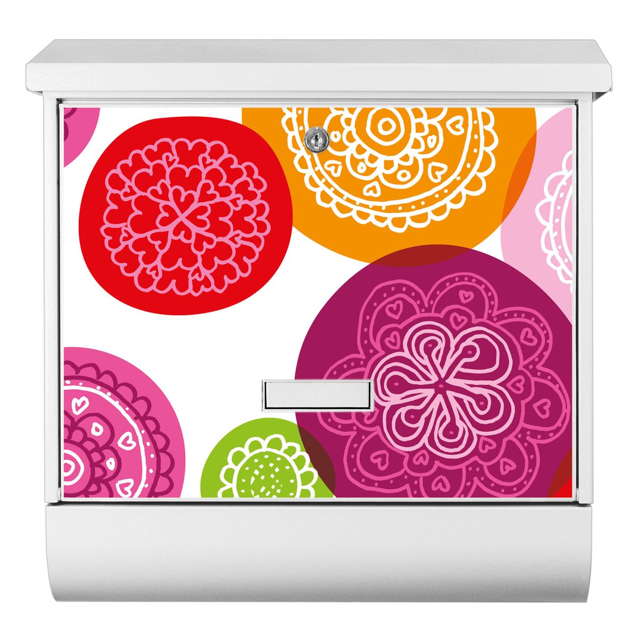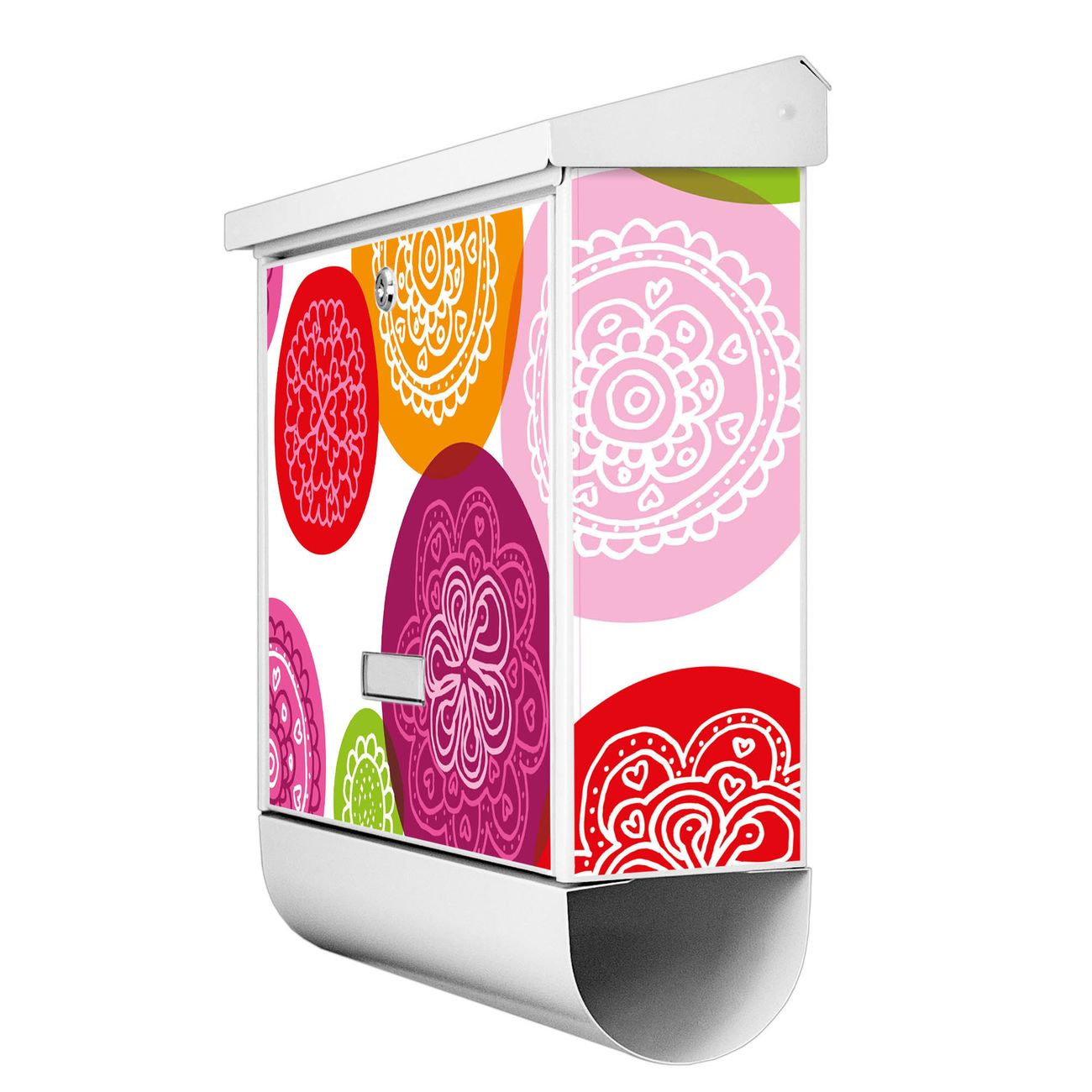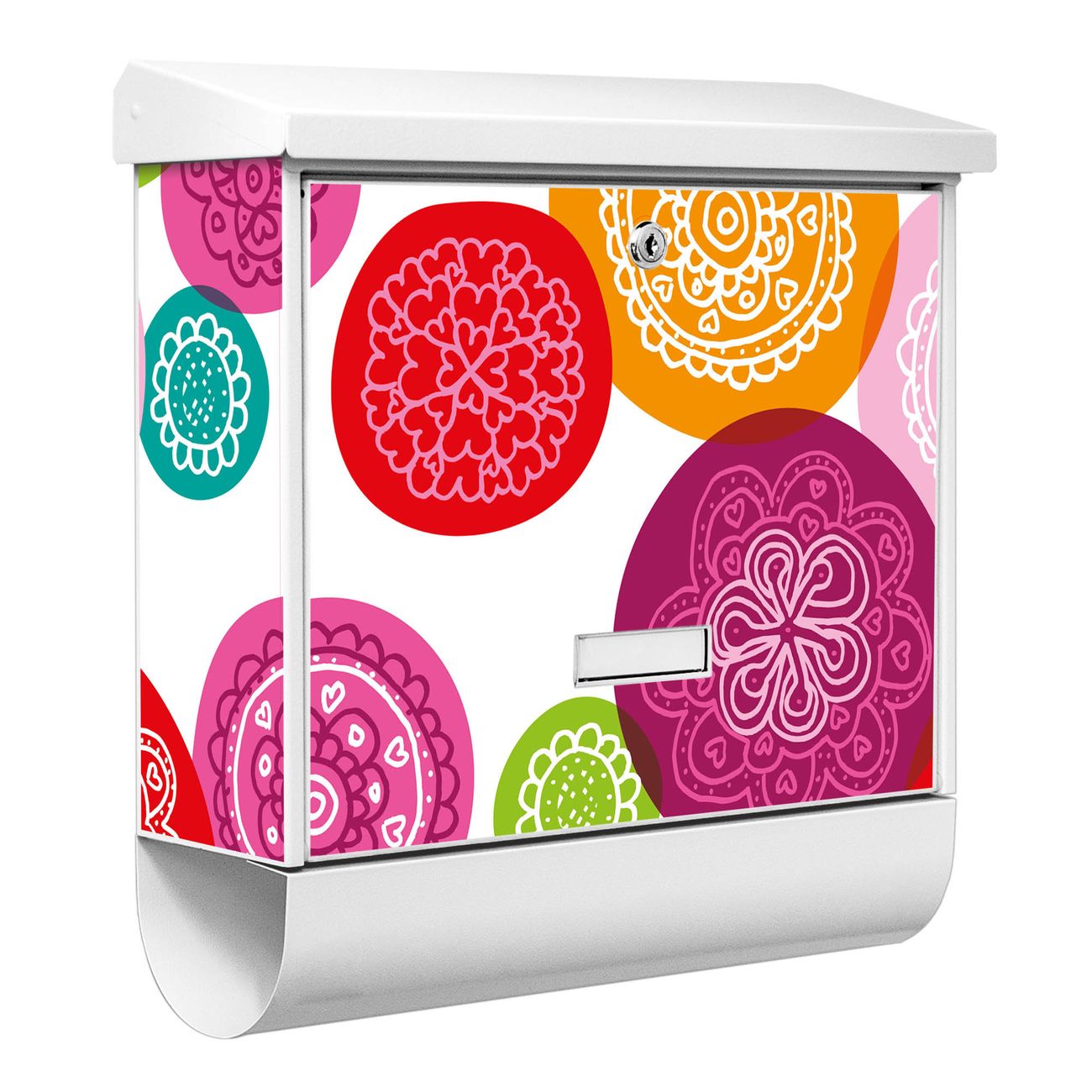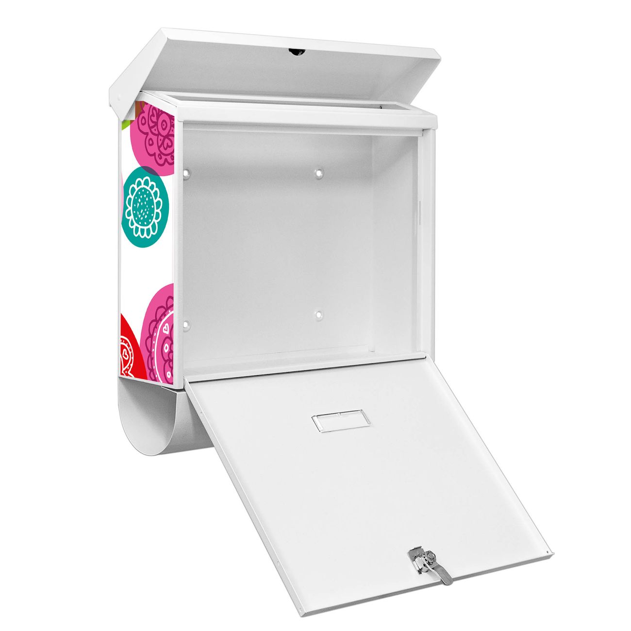 Der BURG-WÄCHTER Stahl Briefkasten mit Naive Blüten Motiv bietet Ihnen mit seinem Fassungsvermögen genügend Platz auch für große A4 Sendungen und Zeitschriften. Das integrierte Regendach schützt Ihre Post vor dem Eindringen von Regen.
