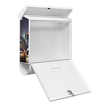 Der BURG-WÄCHTER Stahl Briefkasten mit New York Motiv bietet Ihnen mit seinem Fassungsvermögen genügend Platz auch für große A4 Sendungen und Zeitschriften. Das integrierte Regendach schützt Ihre Post vor dem Eindringen von Regen.