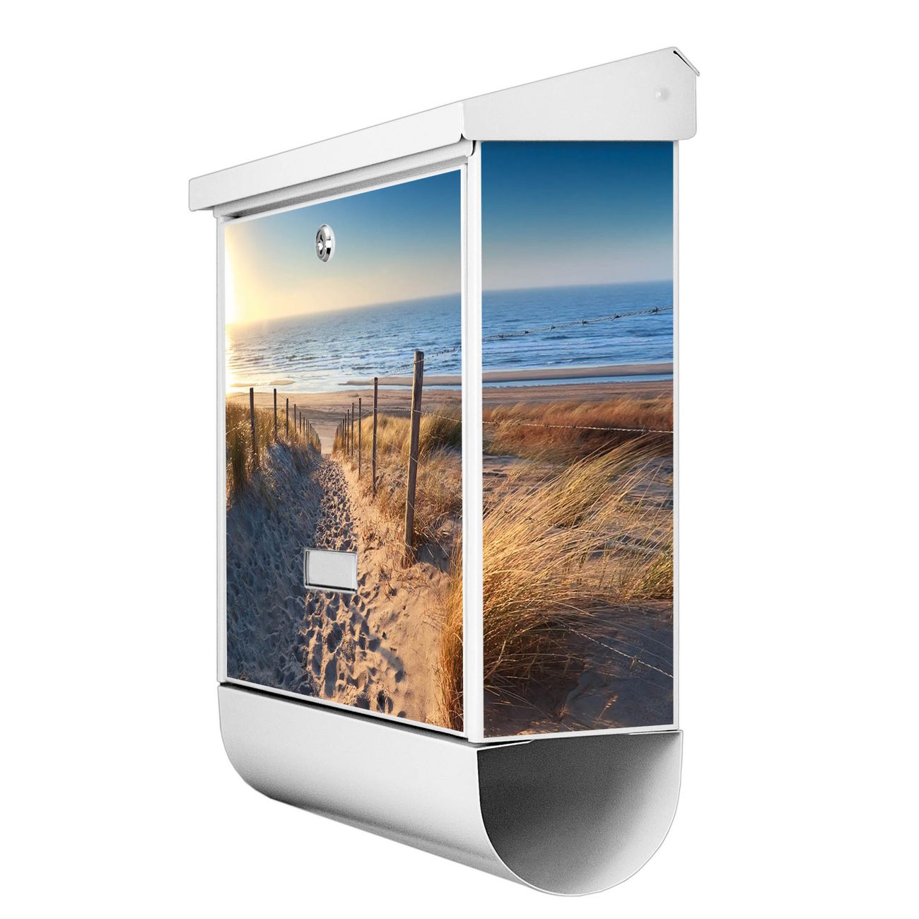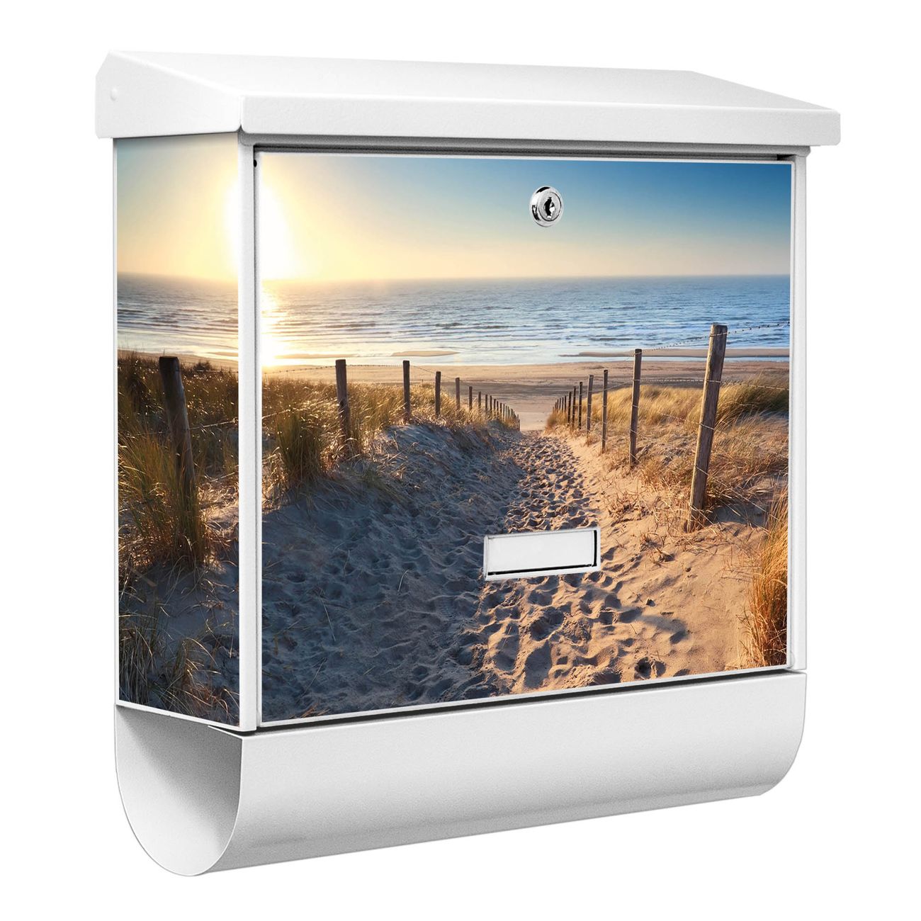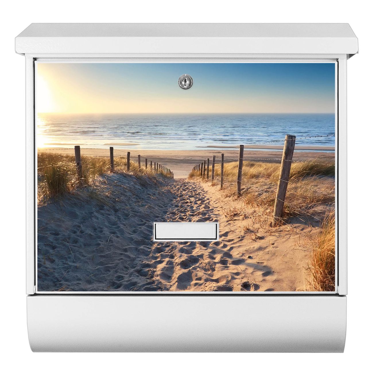 Der BURG-WÄCHTER Stahl Briefkasten mit Nordseestrand Motiv bietet Ihnen mit seinem Fassungsvermögen genügend Platz auch für große A4 Sendungen und Zeitschriften. Das integrierte Regendach schützt Ihre Post vor dem Eindringen von Regen.