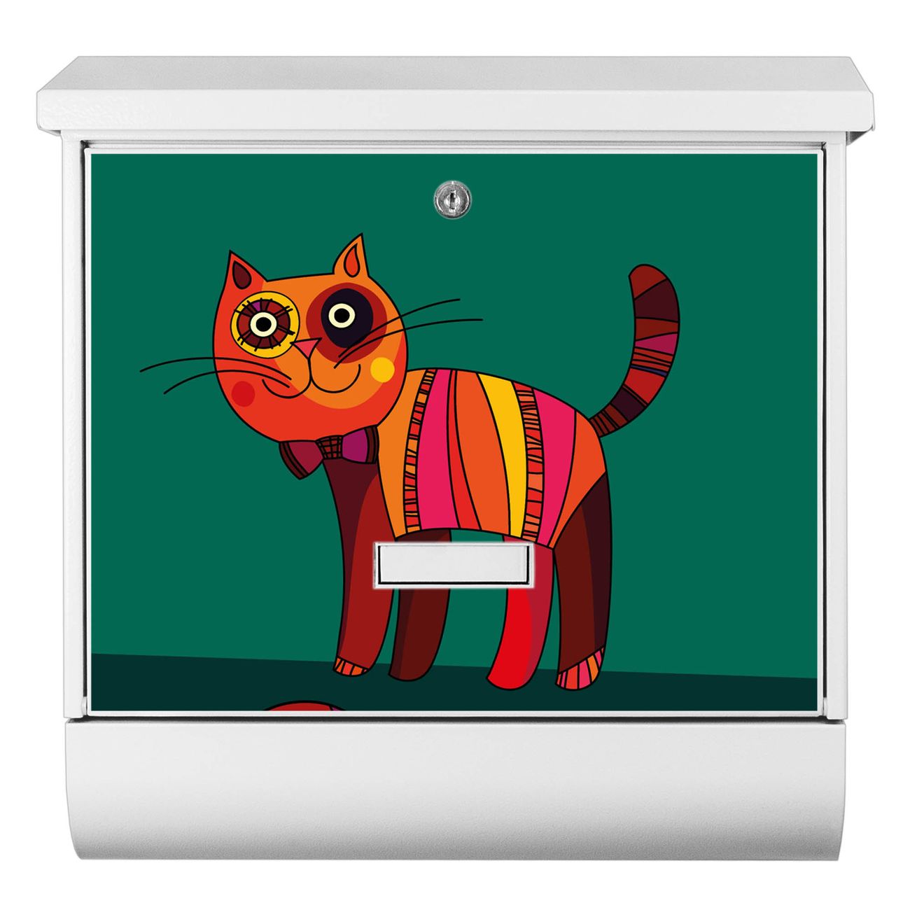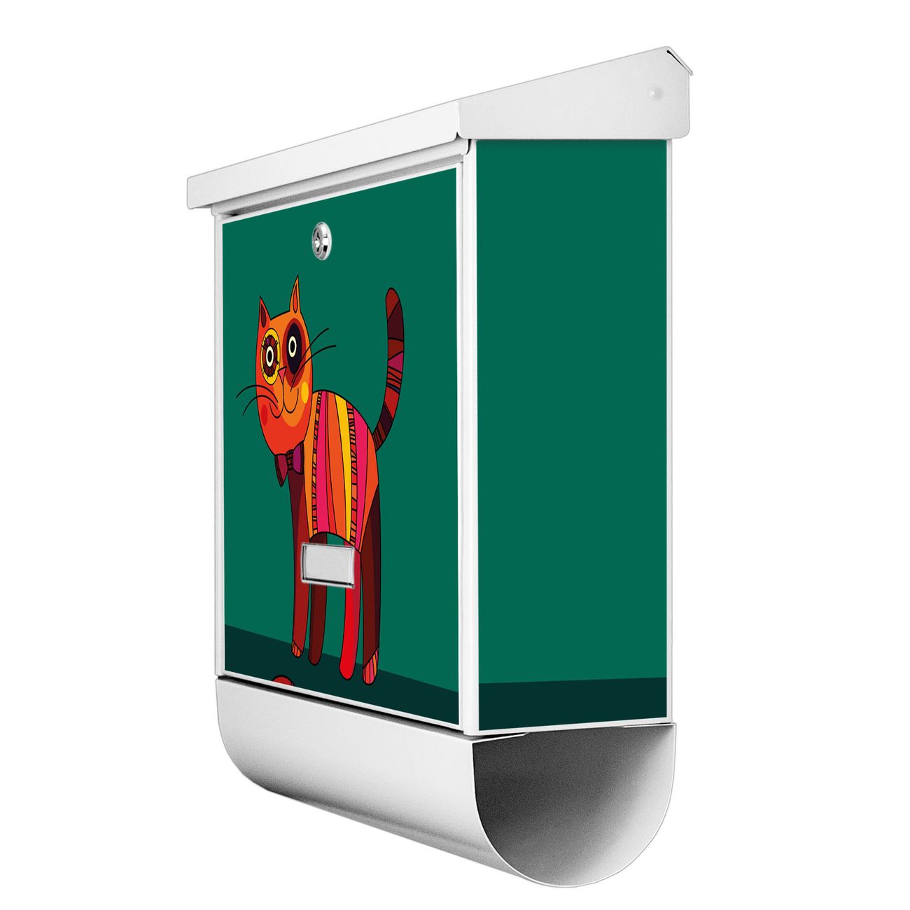 Der BURG-WÄCHTER Stahl Briefkasten mit Orange Katze Motiv bietet Ihnen mit seinem Fassungsvermögen genügend Platz auch für große A4 Sendungen und Zeitschriften. Das integrierte Regendach schützt Ihre Post vor dem Eindringen von Regen.