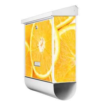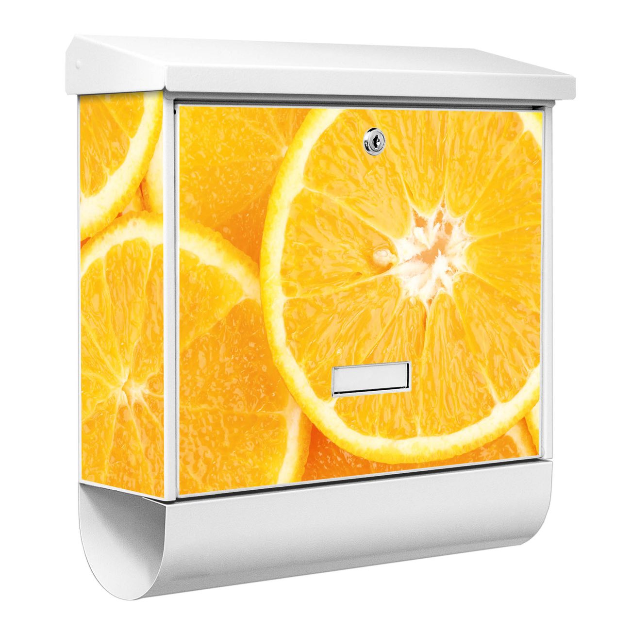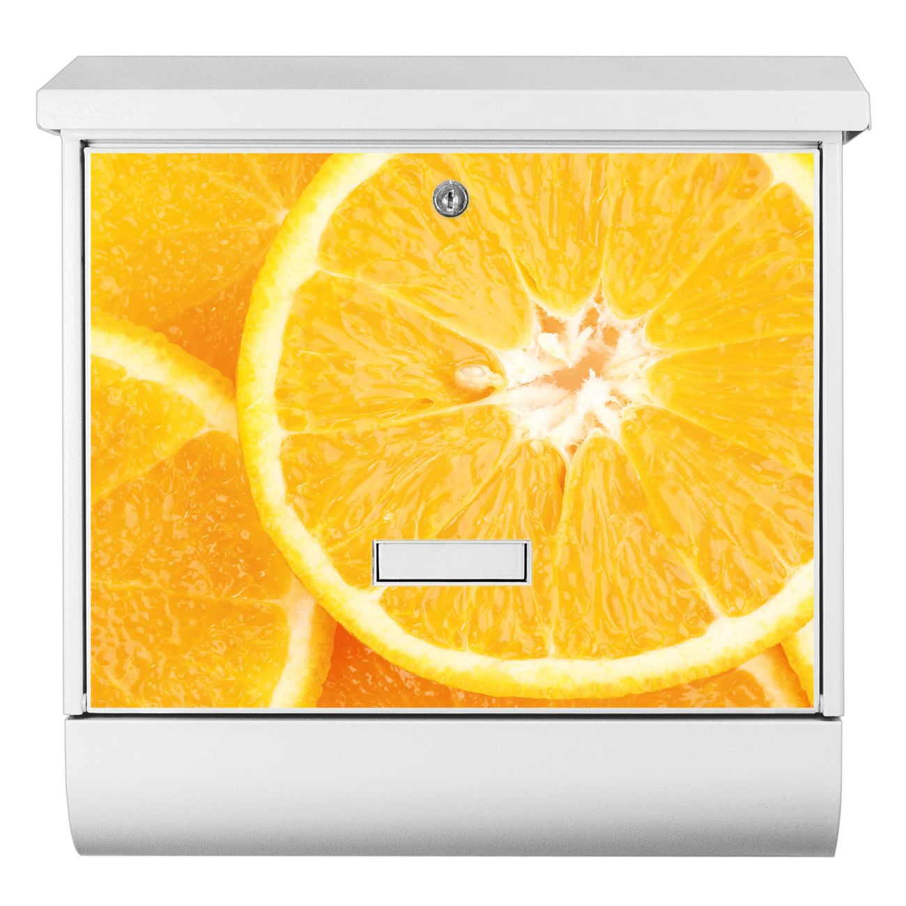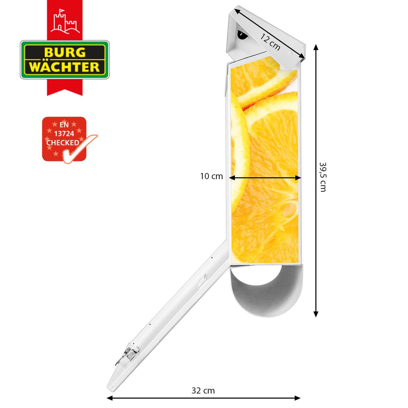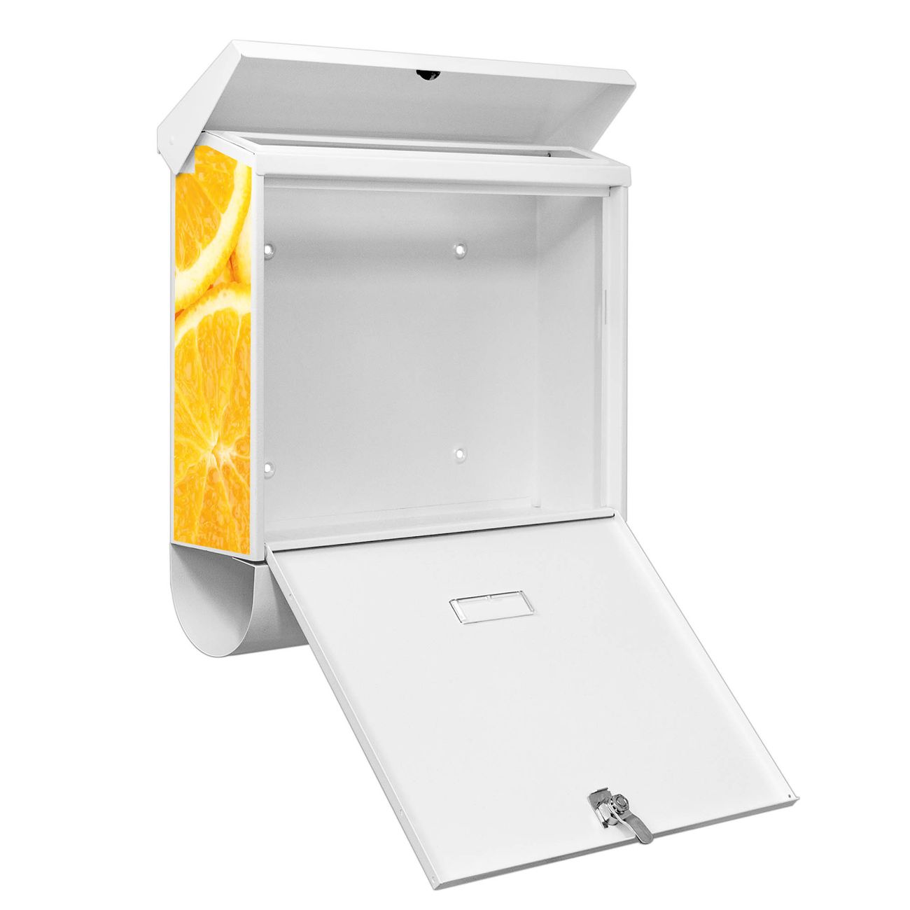 Der BURG-WÄCHTER Stahl Briefkasten mit Orangenscheiben Motiv bietet Ihnen mit seinem Fassungsvermögen genügend Platz auch für große A4 Sendungen und Zeitschriften. Das integrierte Regendach schützt Ihre Post vor dem Eindringen von Regen.