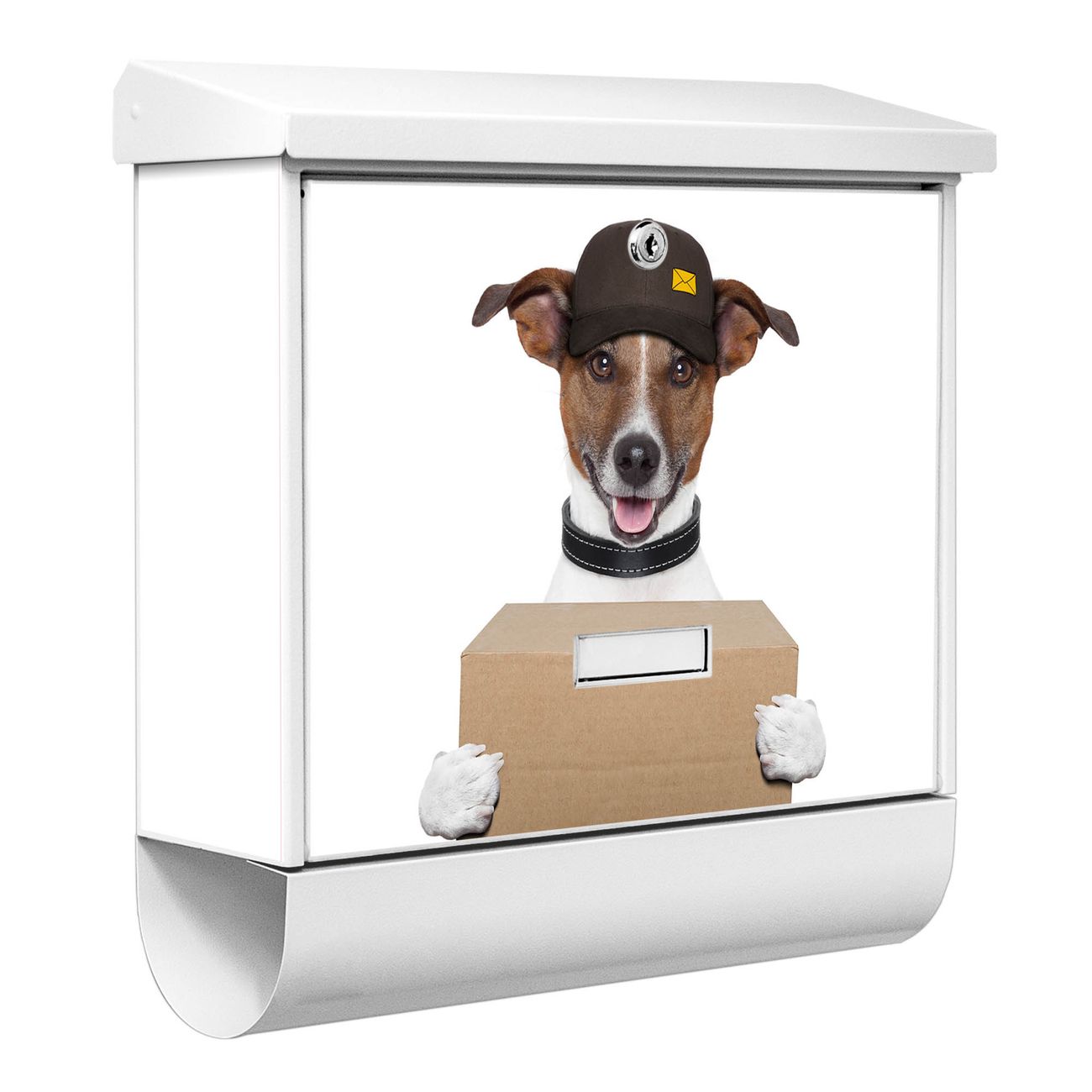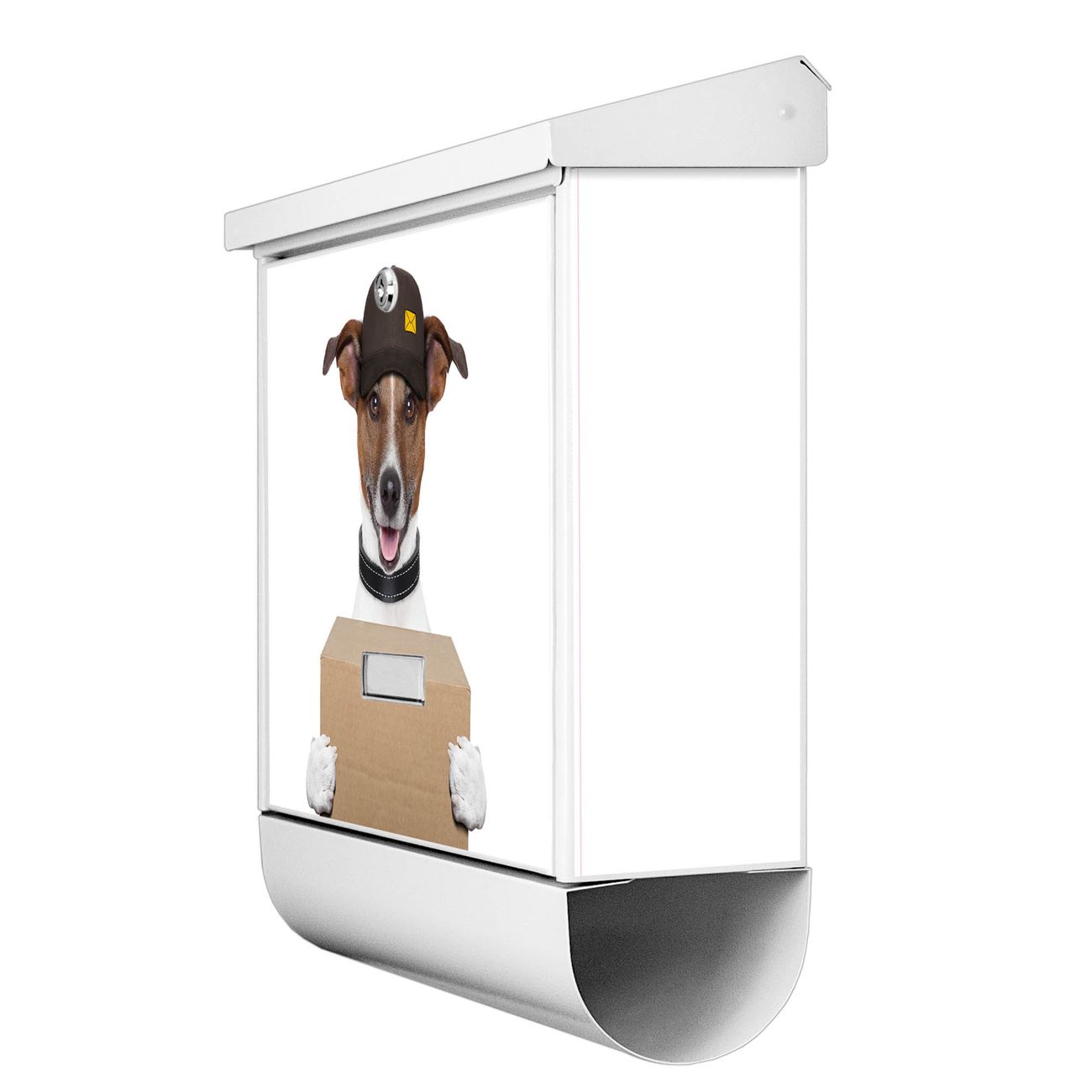 Der BURG-WÄCHTER Stahl Briefkasten mit Paketdienst Jack Russel Motiv bietet Ihnen mit seinem Fassungsvermögen genügend Platz auch für große A4 Sendungen und Zeitschriften. Das integrierte Regendach schützt Ihre Post vor dem Eindringen von Regen.