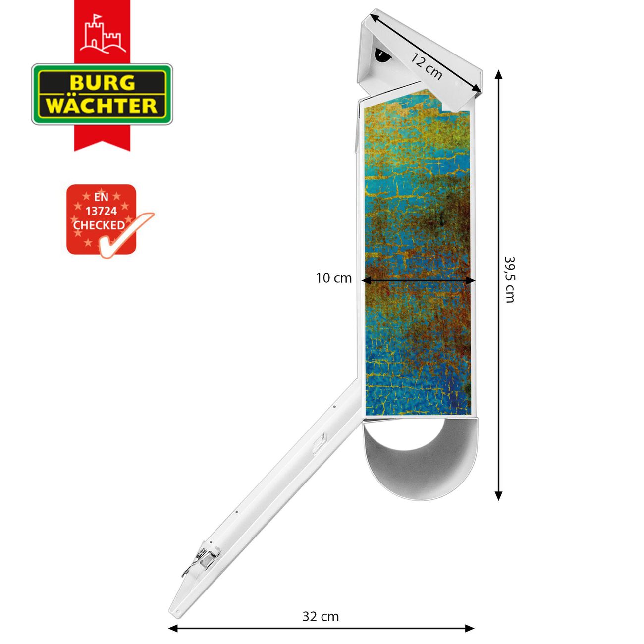 Der BURG-WÄCHTER Stahl Briefkasten mit Patina Motiv bietet Ihnen mit seinem Fassungsvermögen genügend Platz auch für große A4 Sendungen und Zeitschriften. Das integrierte Regendach schützt Ihre Post vor dem Eindringen von Regen.