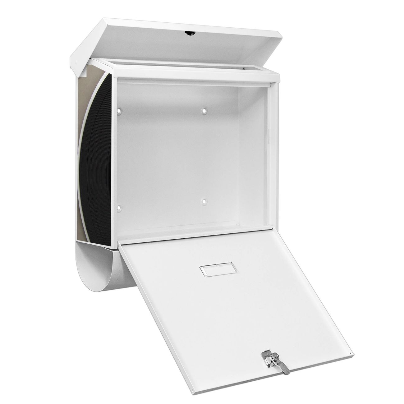 Der BURG-WÄCHTER Stahl Briefkasten mit Plattenspieler Motiv bietet Ihnen mit seinem Fassungsvermögen genügend Platz auch für große A4 Sendungen und Zeitschriften. Das integrierte Regendach schützt Ihre Post vor dem Eindringen von Regen.