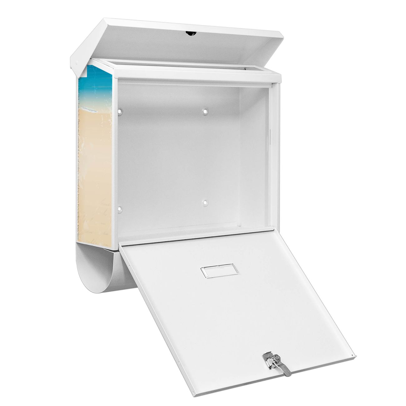 Der Briefkasten besteht aus Stahl, einem hochwertigen Material das äußerst unempfindlich gegenüber Witterungseinflüssen ist. Das Motiv besteht aus einer wetter- und UV-festen Folie, die Ihren Briefkasten zusätzlich vor Kratzern schützt. Der Postkasten ist 42,5cm hoch, 38cm breit und 11,5cm tief. Der Briefeinwurf ist 33,2cm x 3,1cm, Format DIN C4. Der Briefkasten wird mit Montagematerial und zwei Schlüsseln geliefert.
