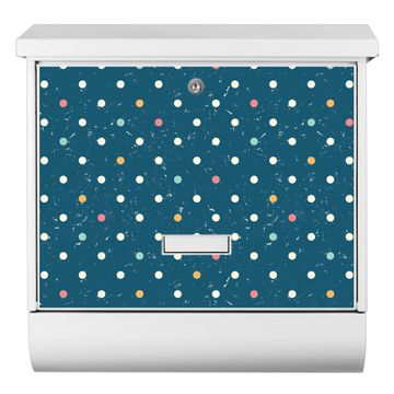 Der BURG-WÄCHTER Stahl Briefkasten mit Punkte auf Blau Motiv bietet Ihnen mit seinem Fassungsvermögen genügend Platz auch für große A4 Sendungen und Zeitschriften. Das integrierte Regendach schützt Ihre Post vor dem Eindringen von Regen.