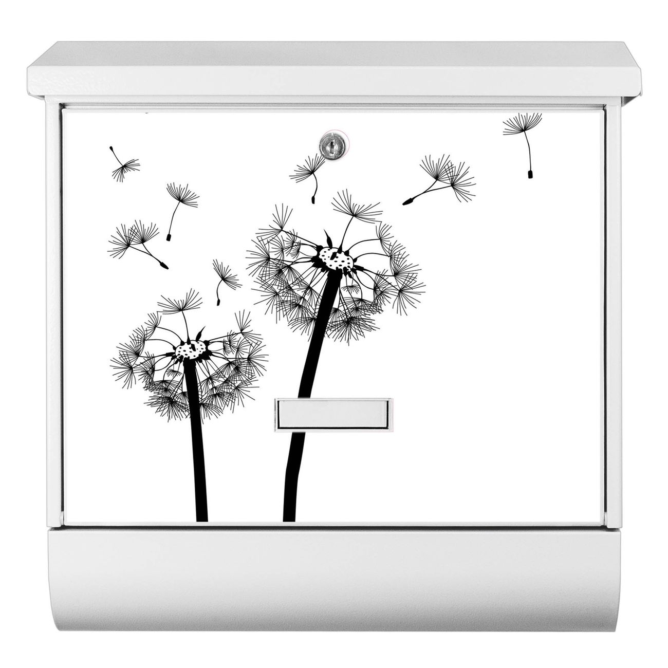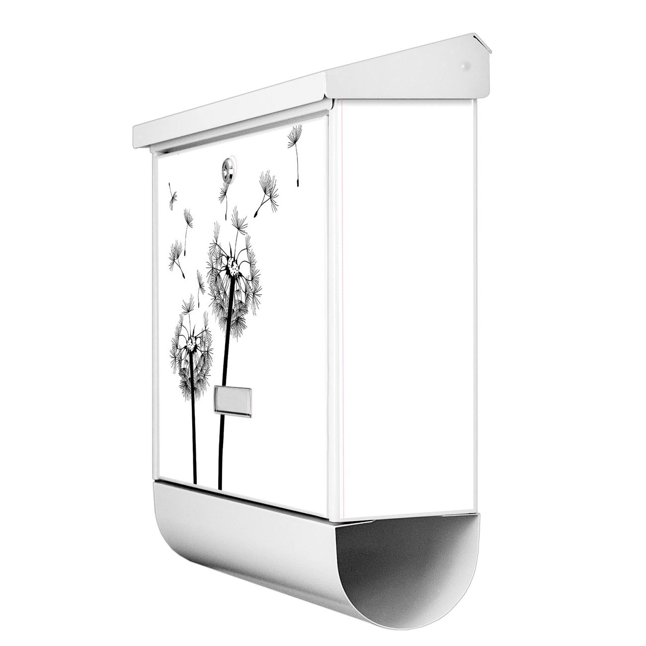 Der BURG-WÄCHTER Stahl Briefkasten mit Pusteblume 2 Motiv bietet Ihnen mit seinem Fassungsvermögen genügend Platz auch für große A4 Sendungen und Zeitschriften. Das integrierte Regendach schützt Ihre Post vor dem Eindringen von Regen.