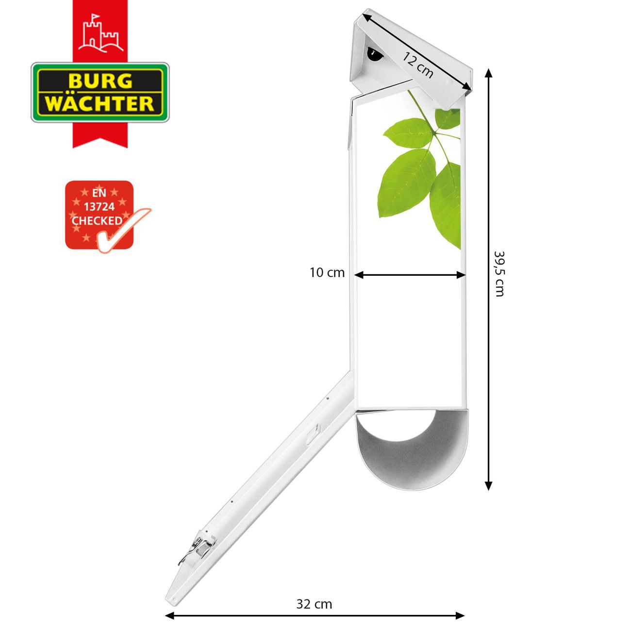 Der BURG-WÄCHTER Stahl Briefkasten mit Rahmen Blätter Motiv bietet Ihnen mit seinem Fassungsvermögen genügend Platz auch für große A4 Sendungen und Zeitschriften. Das integrierte Regendach schützt Ihre Post vor dem Eindringen von Regen.