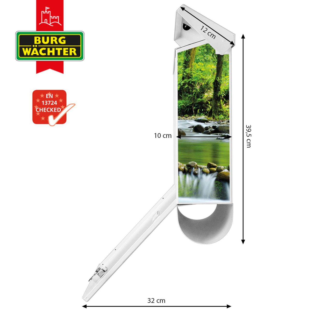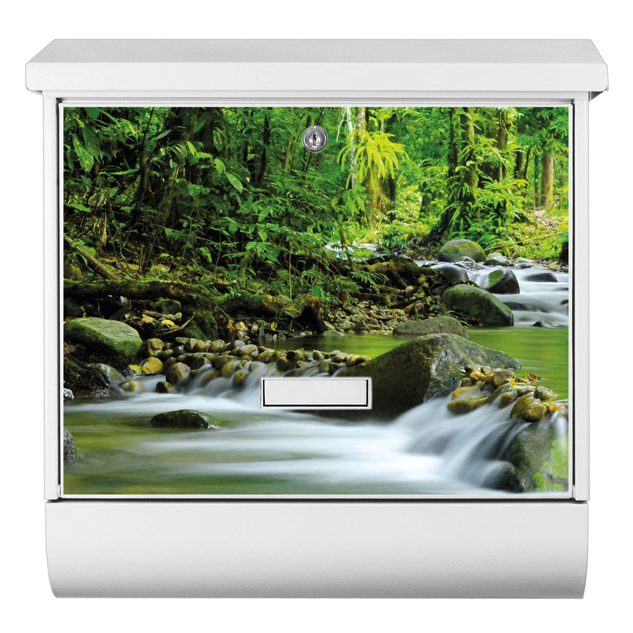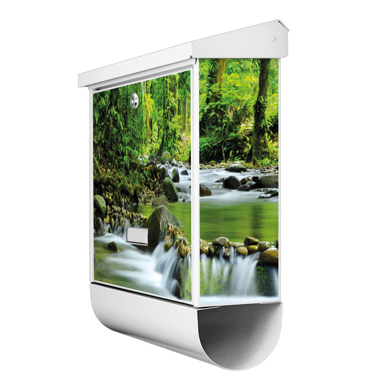 Der BURG-WÄCHTER Stahl Briefkasten mit Rauschender Bach Motiv bietet Ihnen mit seinem Fassungsvermögen genügend Platz auch für große A4 Sendungen und Zeitschriften. Das integrierte Regendach schützt Ihre Post vor dem Eindringen von Regen.