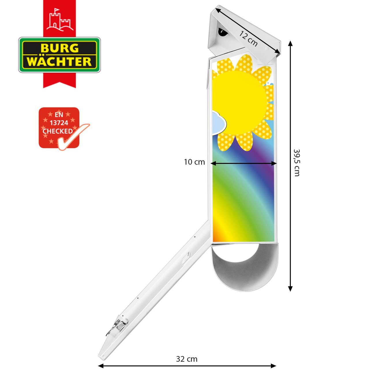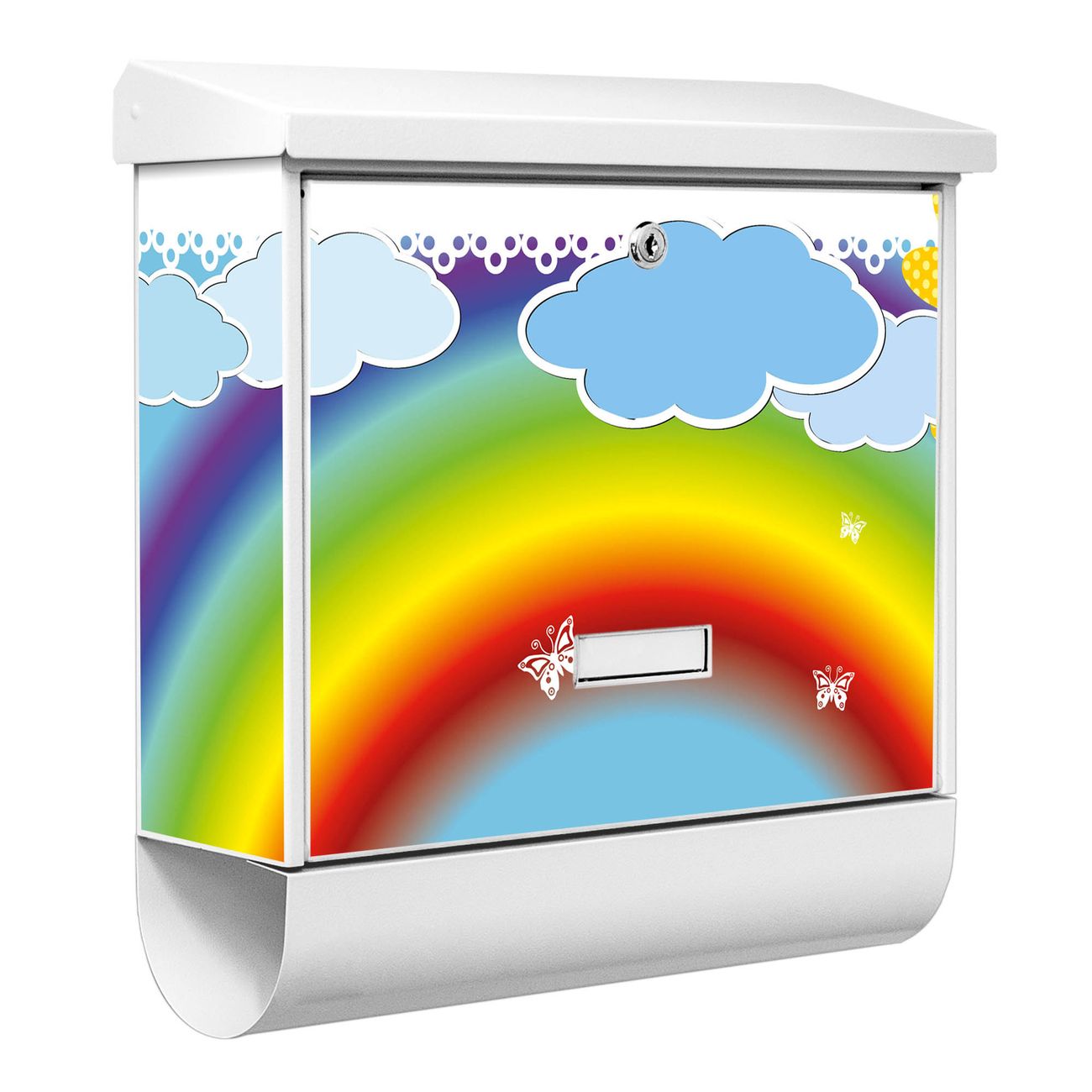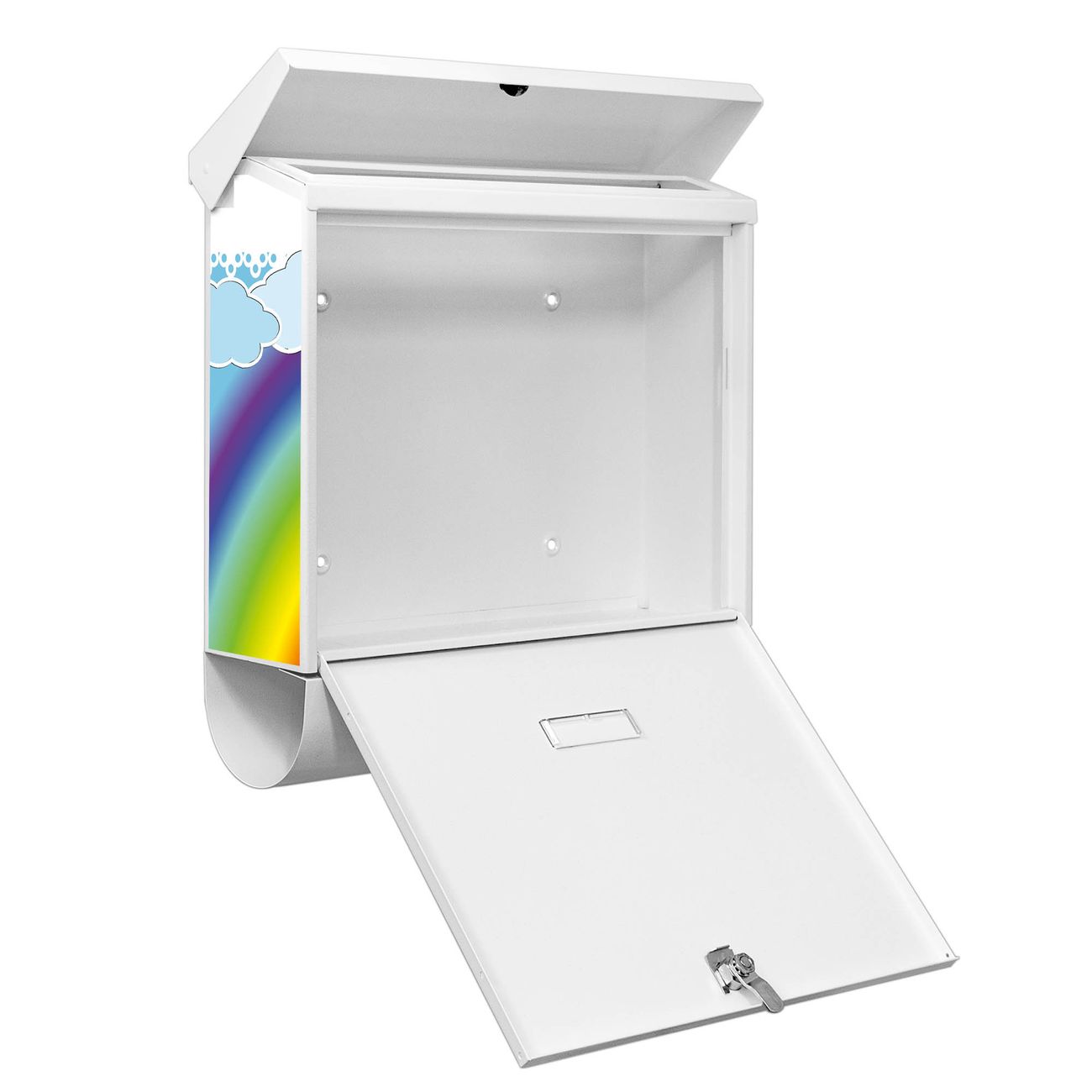 Der BURG-WÄCHTER Stahl Briefkasten mit Regenbogen Motiv bietet Ihnen mit seinem Fassungsvermögen genügend Platz auch für große A4 Sendungen und Zeitschriften. Das integrierte Regendach schützt Ihre Post vor dem Eindringen von Regen.