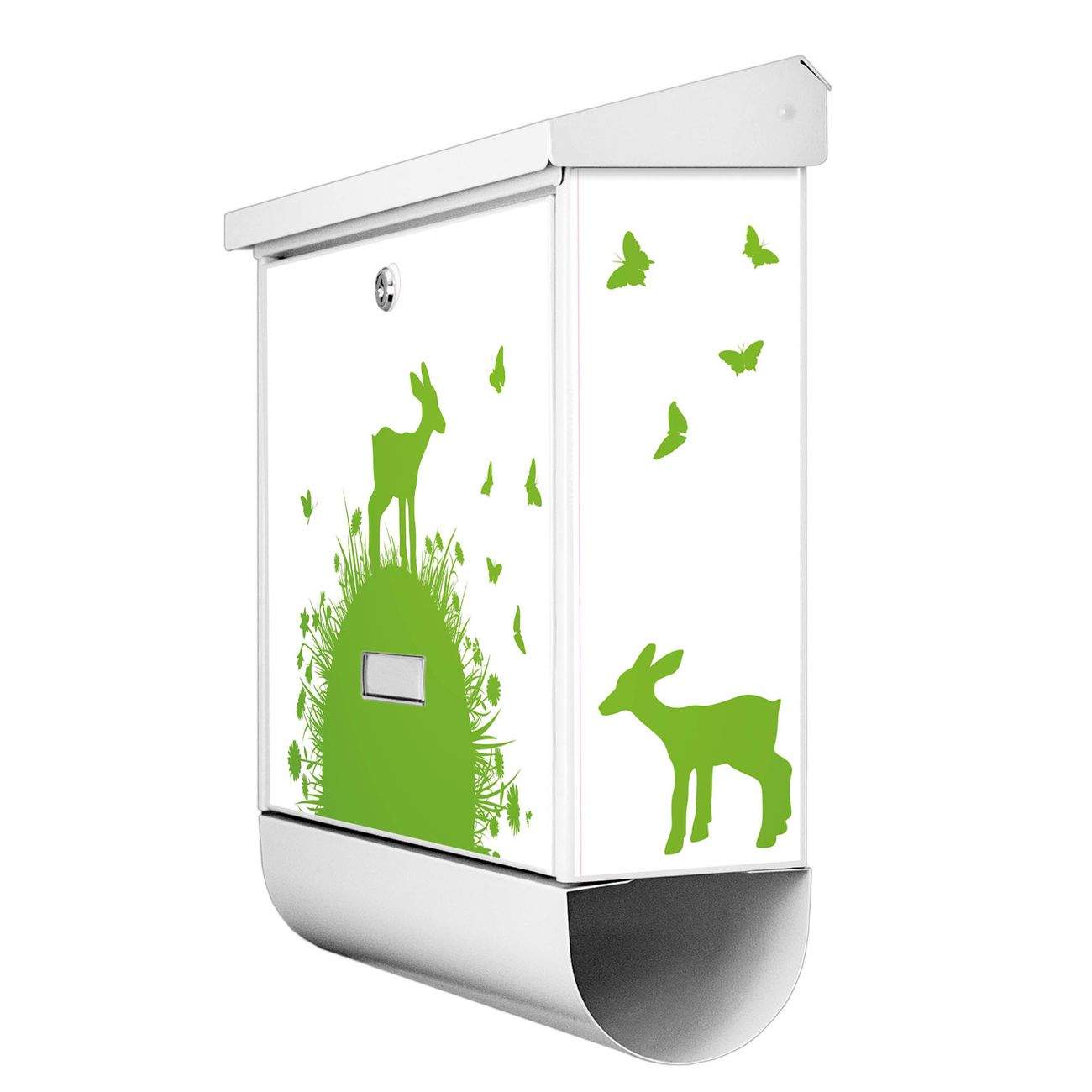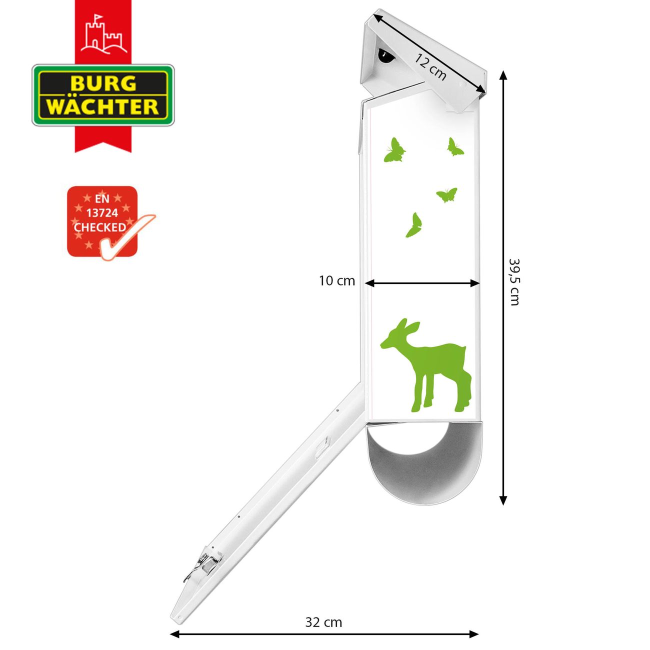 Der BURG-WÄCHTER Stahl Briefkasten mit Rehkitz Motiv bietet Ihnen mit seinem Fassungsvermögen genügend Platz auch für große A4 Sendungen und Zeitschriften. Das integrierte Regendach schützt Ihre Post vor dem Eindringen von Regen.
