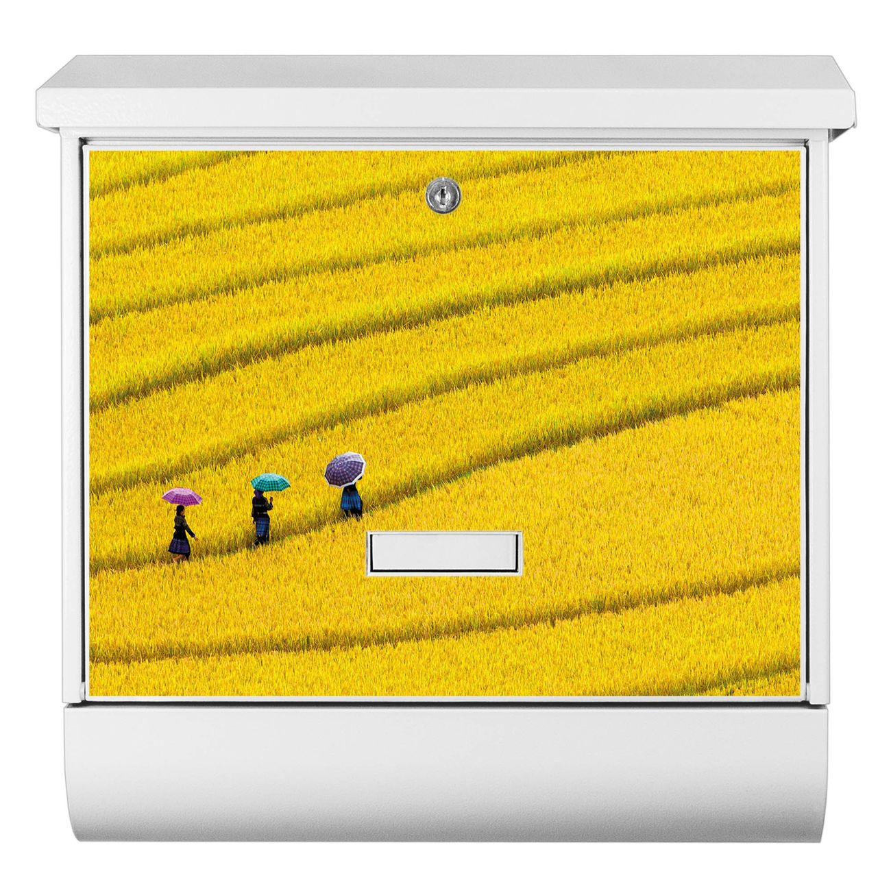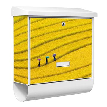 Der BURG-WÄCHTER Stahl Briefkasten mit Reisfeld Vietnam Motiv bietet Ihnen mit seinem Fassungsvermögen genügend Platz auch für große A4 Sendungen und Zeitschriften. Das integrierte Regendach schützt Ihre Post vor dem Eindringen von Regen.