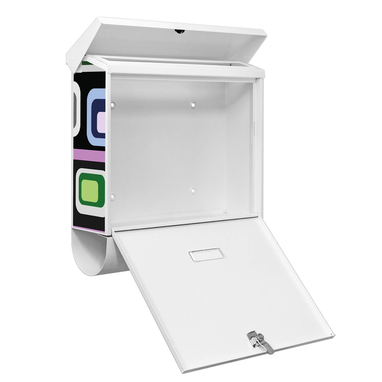 Der Briefkasten besteht aus Stahl, einem hochwertigen Material das äußerst unempfindlich gegenüber Witterungseinflüssen ist. Das Motiv besteht aus einer wetter- und UV-festen Folie, die Ihren Briefkasten zusätzlich vor Kratzern schützt. Der Postkasten ist 42,5cm hoch, 38cm breit und 11,5cm tief. Der Briefeinwurf ist 33,2cm x 3,1cm, Format DIN C4. Der Briefkasten wird mit Montagematerial und zwei Schlüsseln geliefert.
