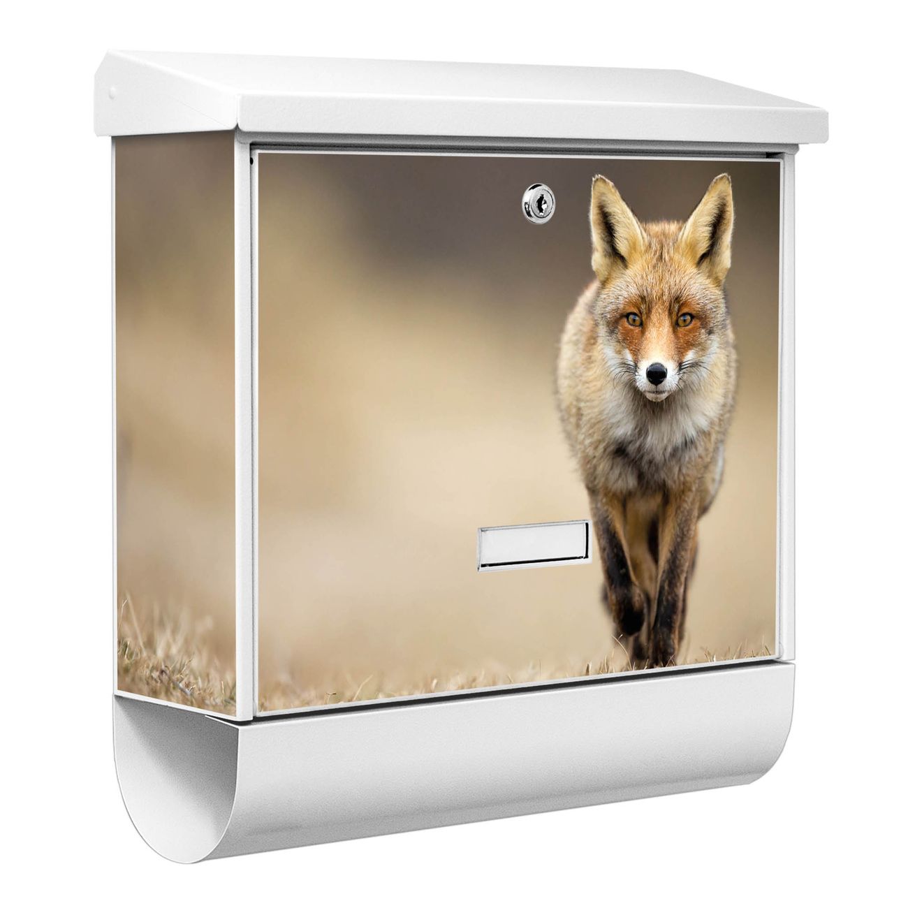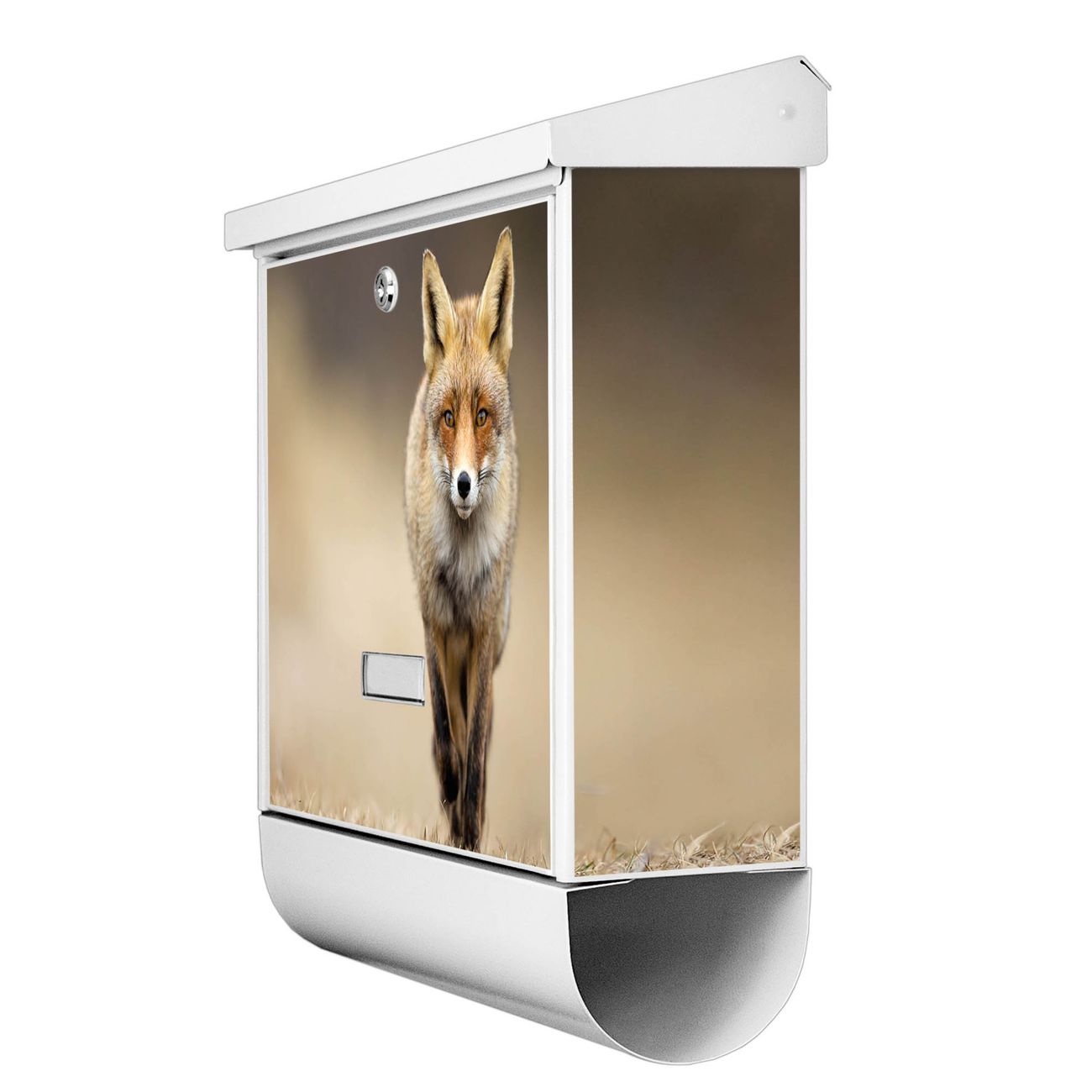 Der Briefkasten besteht aus Stahl, einem hochwertigen Material das äußerst unempfindlich gegenüber Witterungseinflüssen ist. Das Motiv besteht aus einer wetter- und UV-festen Folie, die Ihren Briefkasten zusätzlich vor Kratzern schützt. Der Postkasten ist 42,5cm hoch, 38cm breit und 11,5cm tief. Der Briefeinwurf ist 33,2cm x 3,1cm, Format DIN C4. Der Briefkasten wird mit Montagematerial und zwei Schlüsseln geliefert.