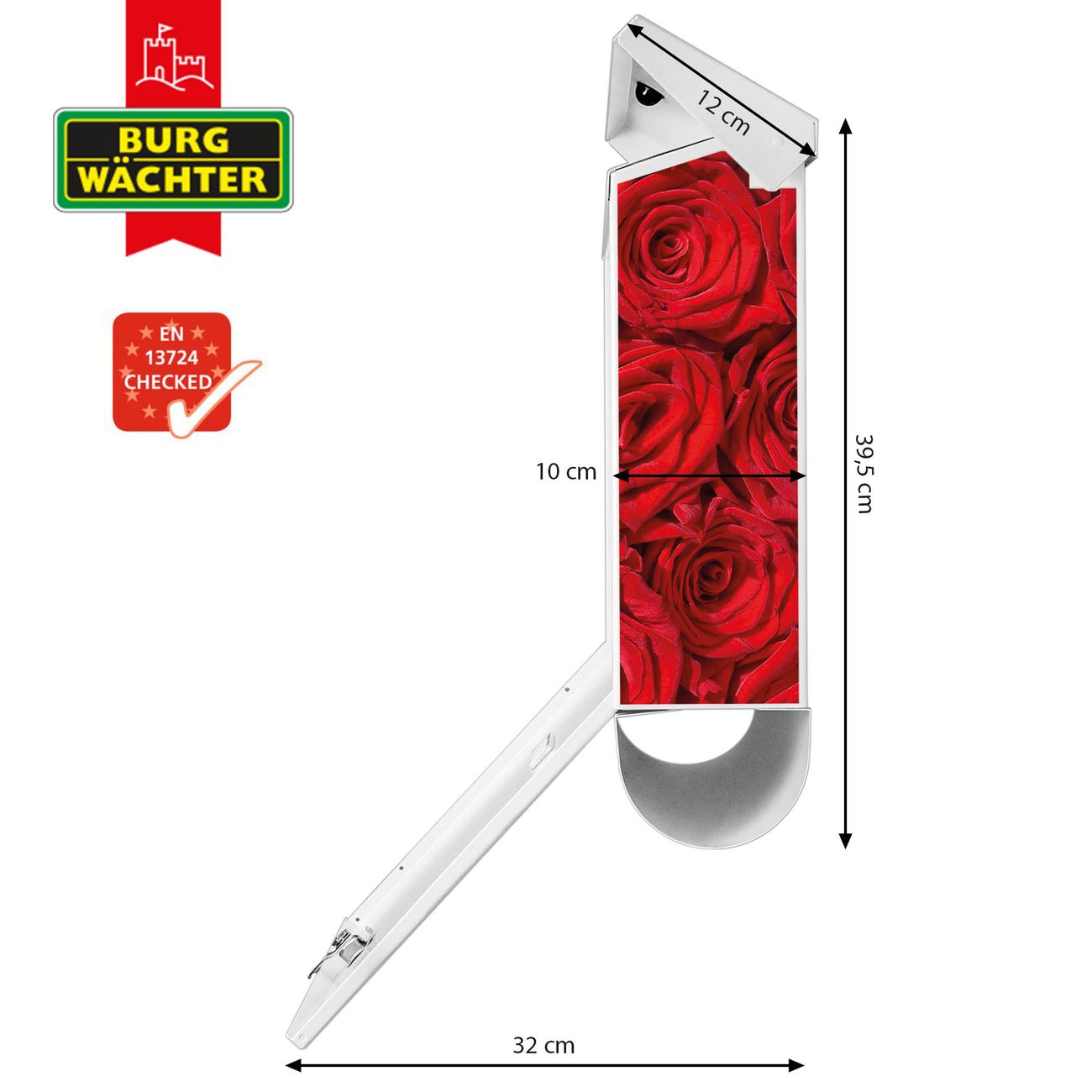 Der BURG-WÄCHTER Stahl Briefkasten mit Rosenbett Motiv bietet Ihnen mit seinem Fassungsvermögen genügend Platz auch für große A4 Sendungen und Zeitschriften. Das integrierte Regendach schützt Ihre Post vor dem Eindringen von Regen.