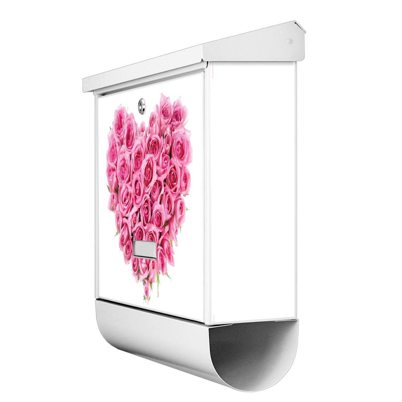 Der BURG-WÄCHTER Stahl Briefkasten mit Rosenherz Motiv bietet Ihnen mit seinem Fassungsvermögen genügend Platz auch für große A4 Sendungen und Zeitschriften. Das integrierte Regendach schützt Ihre Post vor dem Eindringen von Regen.