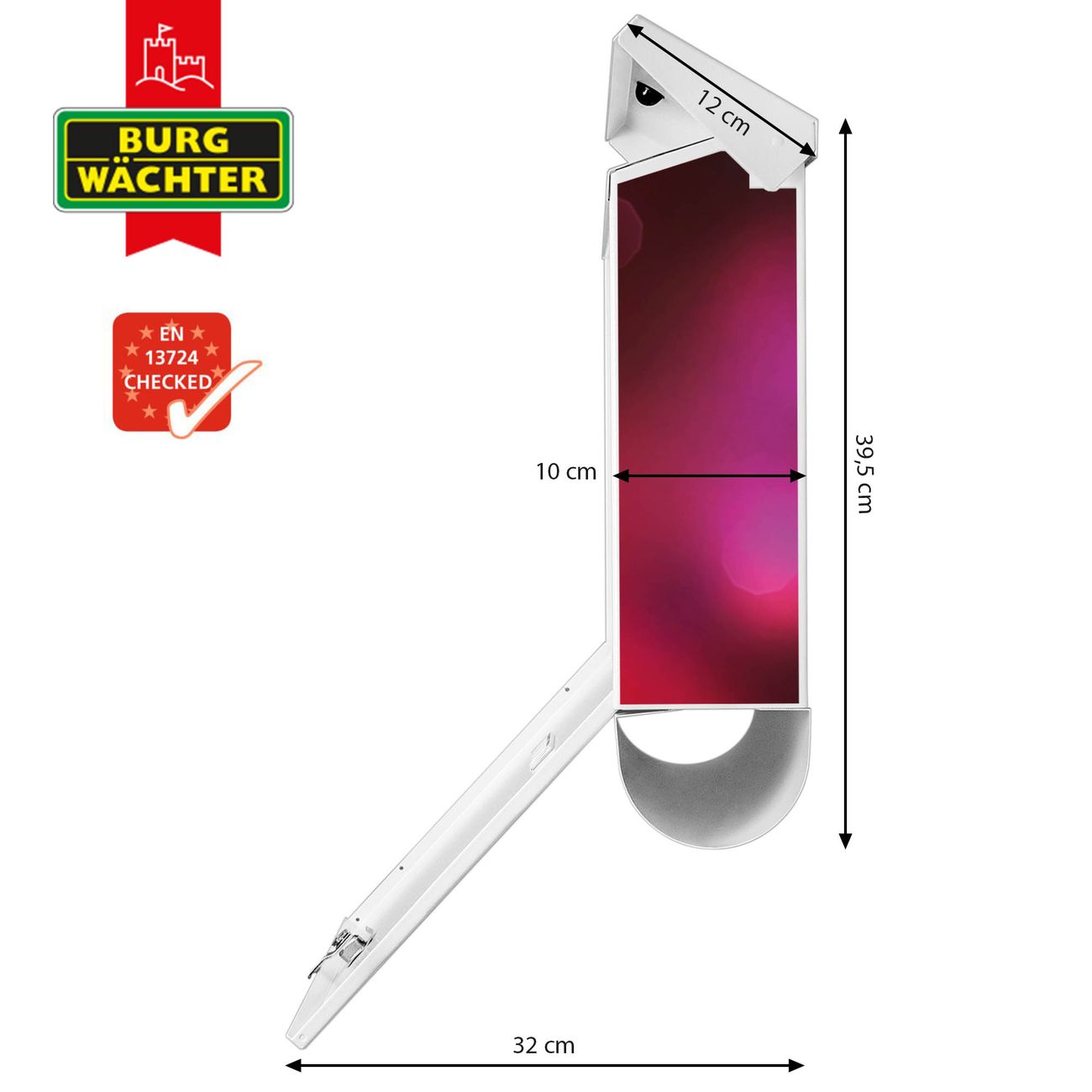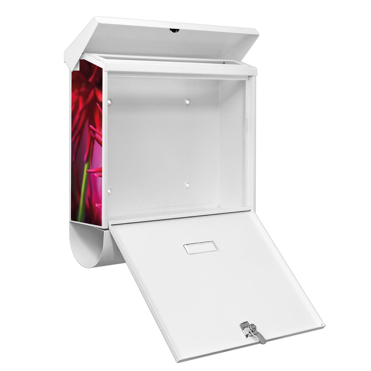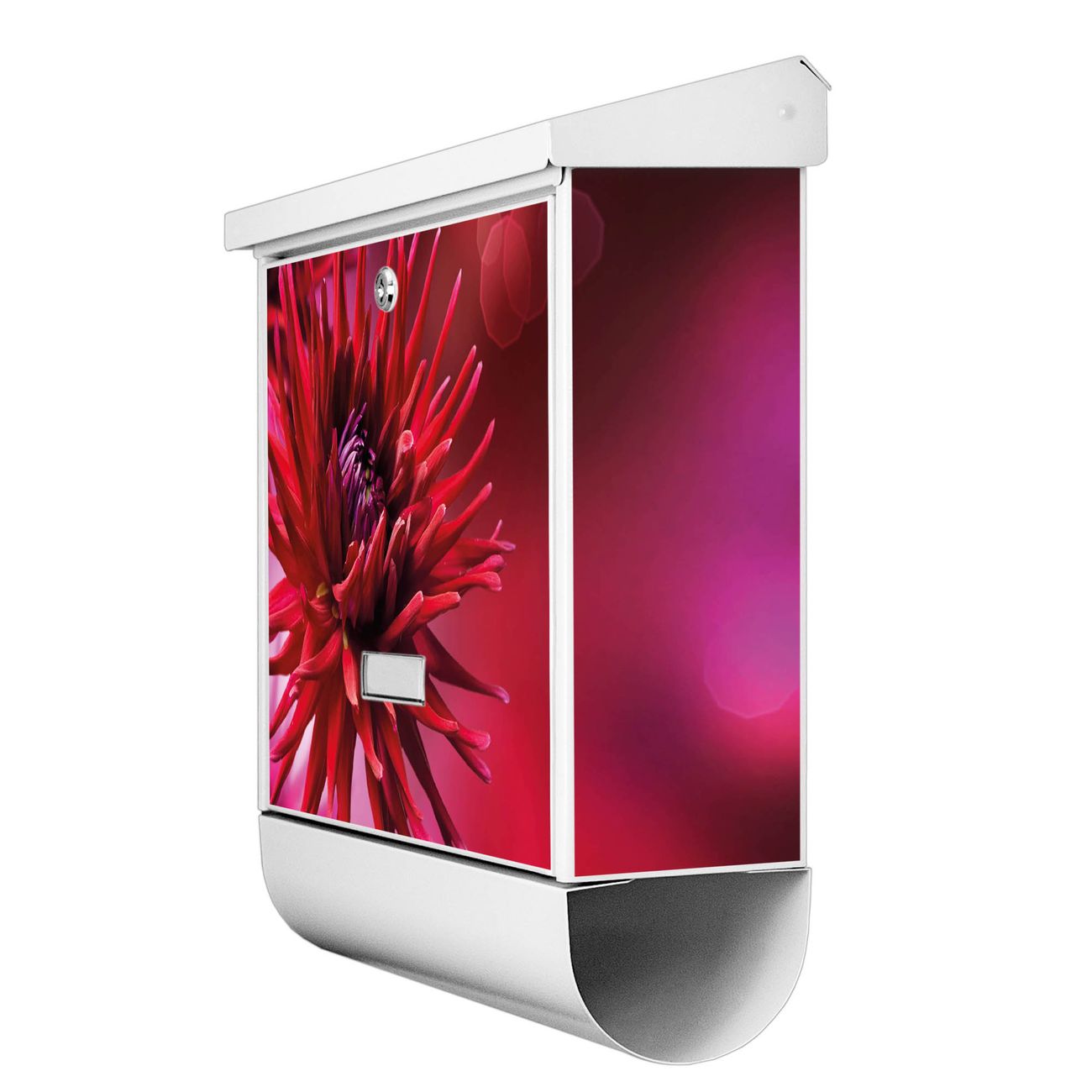 Der BURG-WÄCHTER Stahl Briefkasten mit Rote Dahlien Motiv bietet Ihnen mit seinem Fassungsvermögen genügend Platz auch für große A4 Sendungen und Zeitschriften. Das integrierte Regendach schützt Ihre Post vor dem Eindringen von Regen.