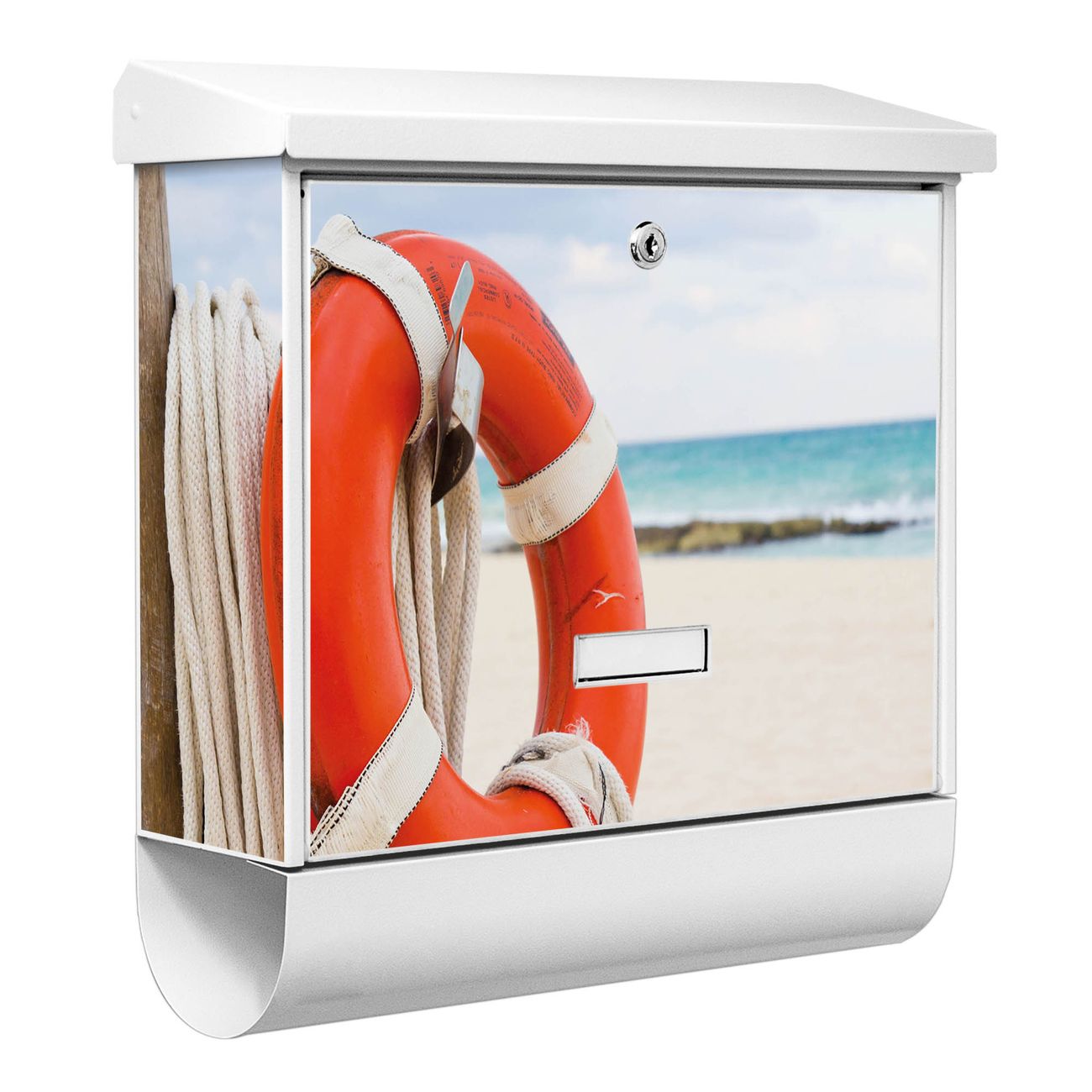 Der BURG-WÄCHTER Stahl Briefkasten mit Roter Rettungsring Motiv bietet Ihnen mit seinem Fassungsvermögen genügend Platz auch für große A4 Sendungen und Zeitschriften. Das integrierte Regendach schützt Ihre Post vor dem Eindringen von Regen.