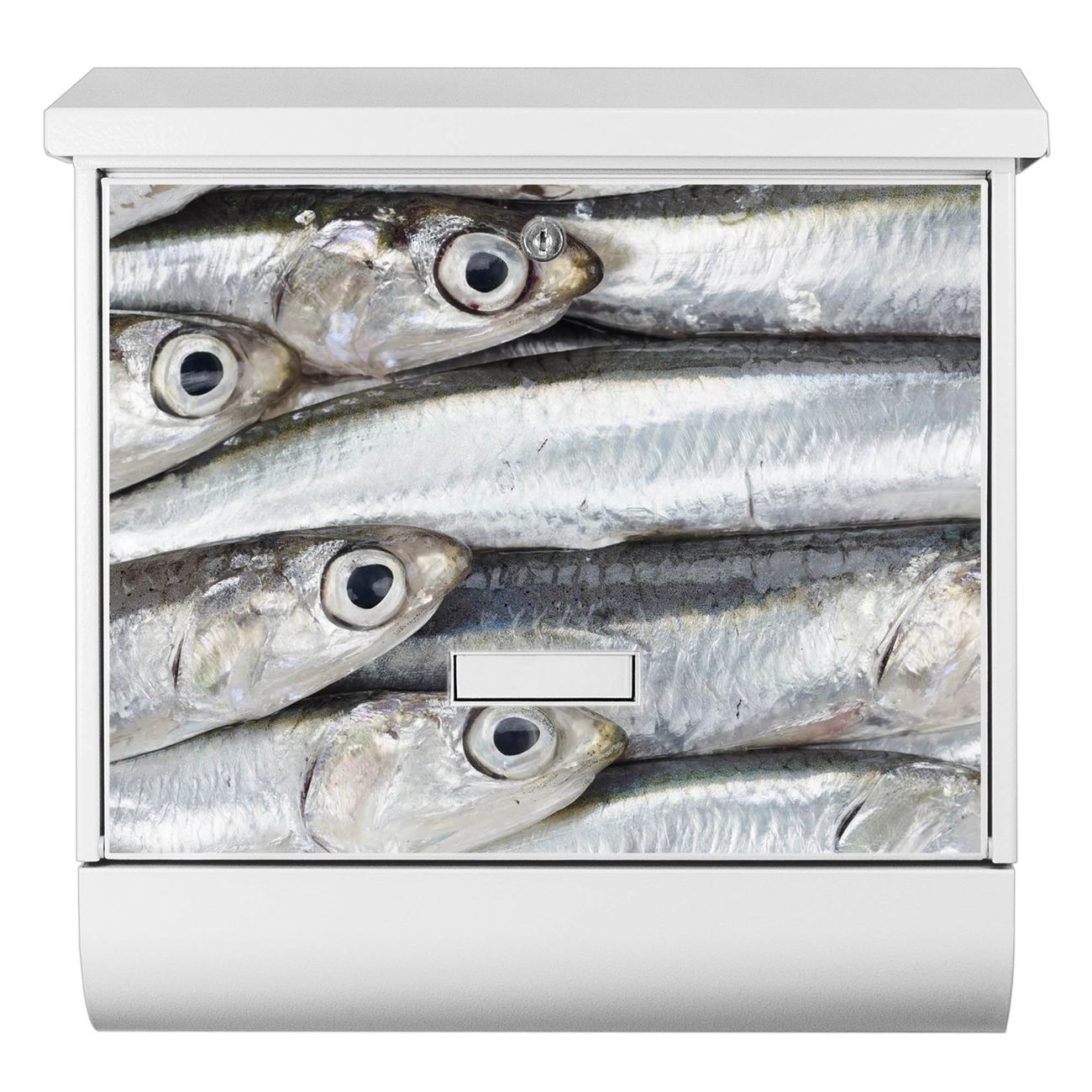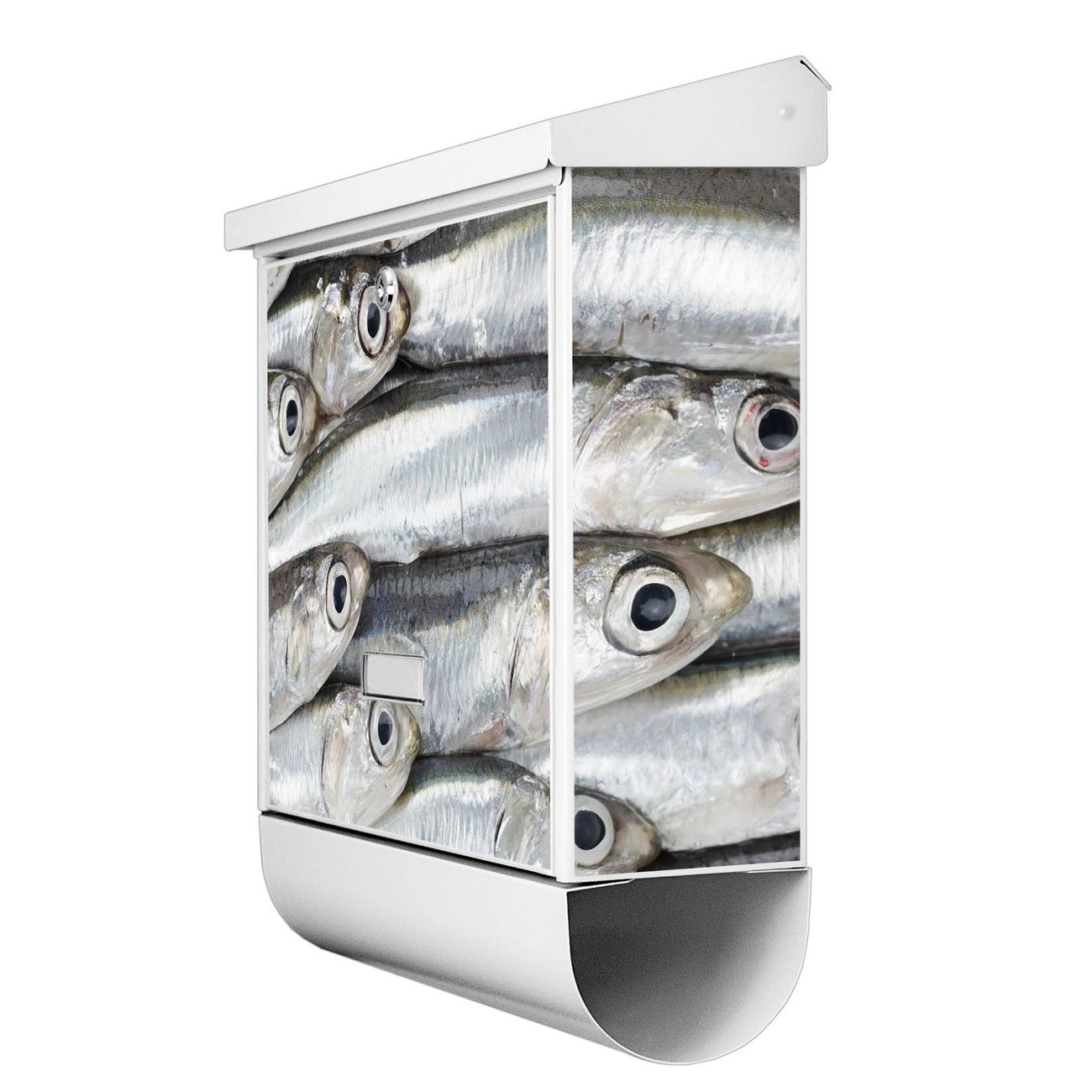 Der BURG-WÄCHTER Stahl Briefkasten mit Sardinen Motiv bietet Ihnen mit seinem Fassungsvermögen genügend Platz auch für große A4 Sendungen und Zeitschriften. Das integrierte Regendach schützt Ihre Post vor dem Eindringen von Regen.