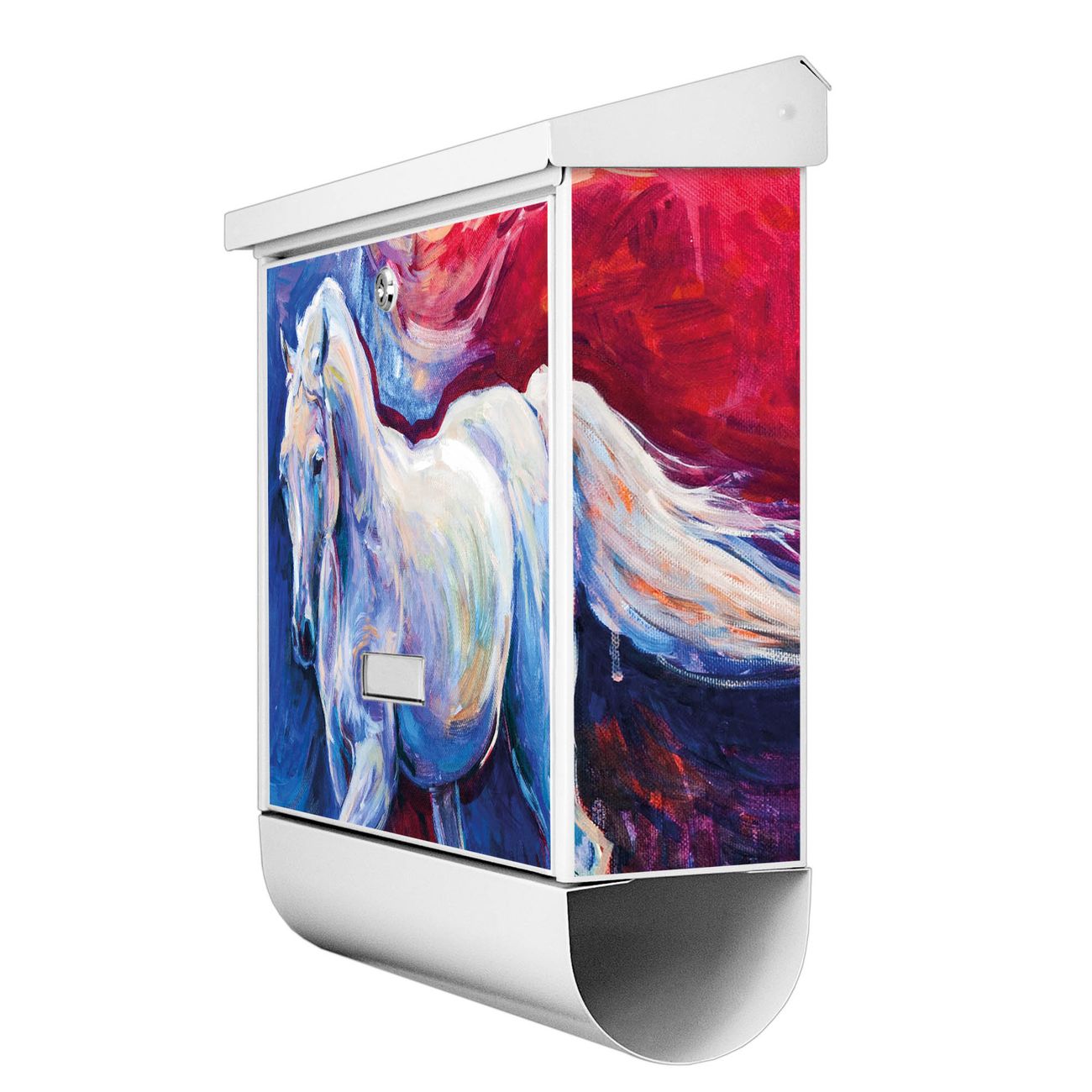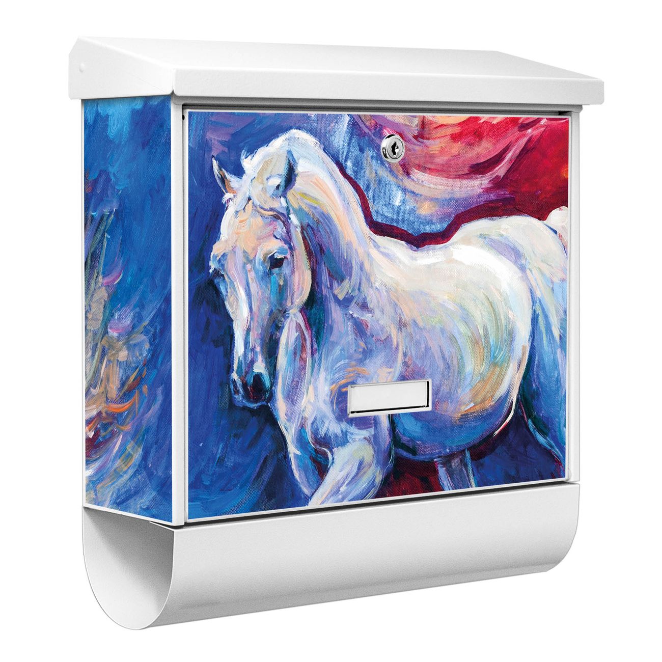 Der Briefkasten besteht aus Stahl, einem hochwertigen Material das äußerst unempfindlich gegenüber Witterungseinflüssen ist. Das Motiv besteht aus einer wetter- und UV-festen Folie, die Ihren Briefkasten zusätzlich vor Kratzern schützt. Der Postkasten ist 42,5cm hoch, 38cm breit und 11,5cm tief. Der Briefeinwurf ist 33,2cm x 3,1cm, Format DIN C4. Der Briefkasten wird mit Montagematerial und zwei Schlüsseln geliefert.