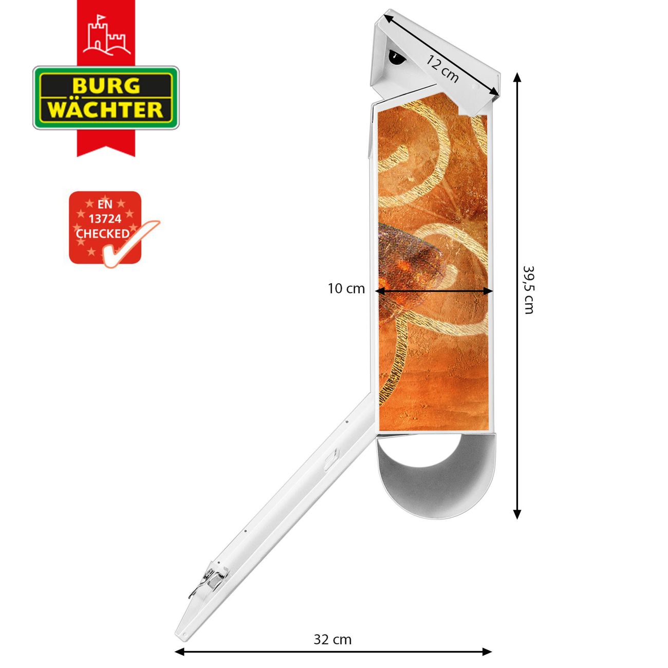Der BURG-WÄCHTER Stahl Briefkasten mit Schmetterling Motiv bietet Ihnen mit seinem Fassungsvermögen genügend Platz auch für große A4 Sendungen und Zeitschriften. Das integrierte Regendach schützt Ihre Post vor dem Eindringen von Regen.