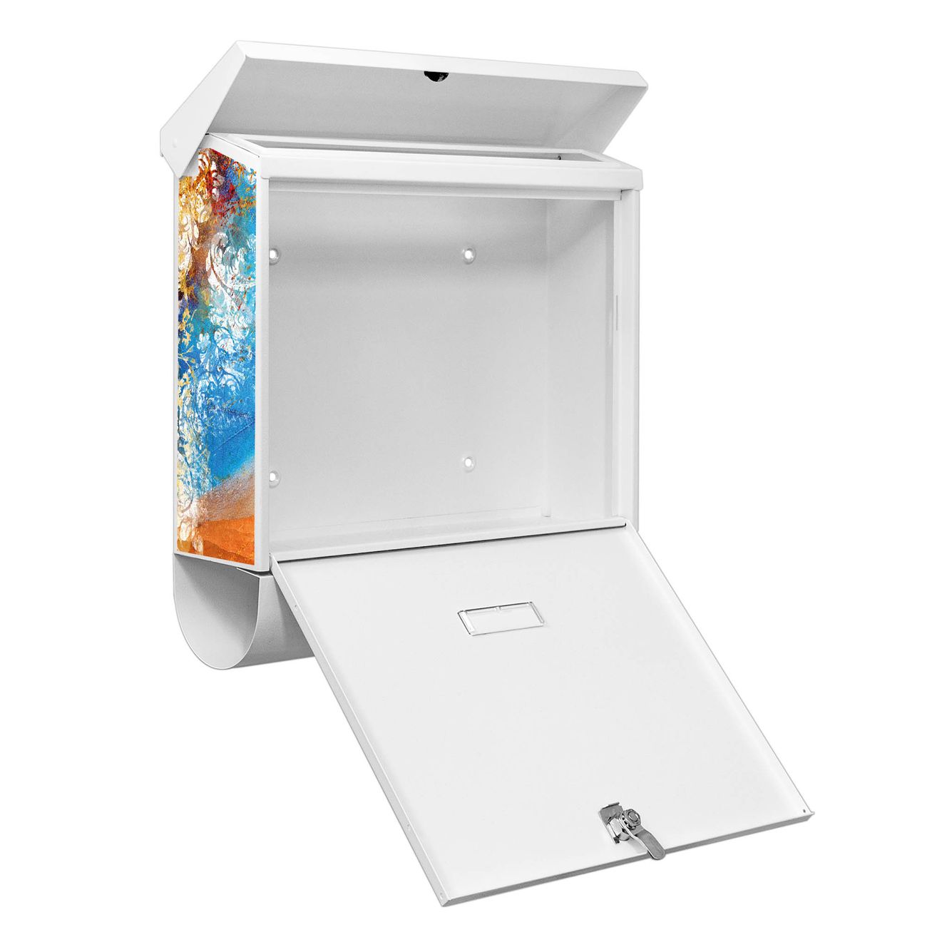 Der Briefkasten besteht aus Stahl, einem hochwertigen Material das äußerst unempfindlich gegenüber Witterungseinflüssen ist. Das Motiv besteht aus einer wetter- und UV-festen Folie, die Ihren Briefkasten zusätzlich vor Kratzern schützt. Der Postkasten ist 42,5cm hoch, 38cm breit und 11,5cm tief. Der Briefeinwurf ist 33,2cm x 3,1cm, Format DIN C4. Der Briefkasten wird mit Montagematerial und zwei Schlüsseln geliefert.
