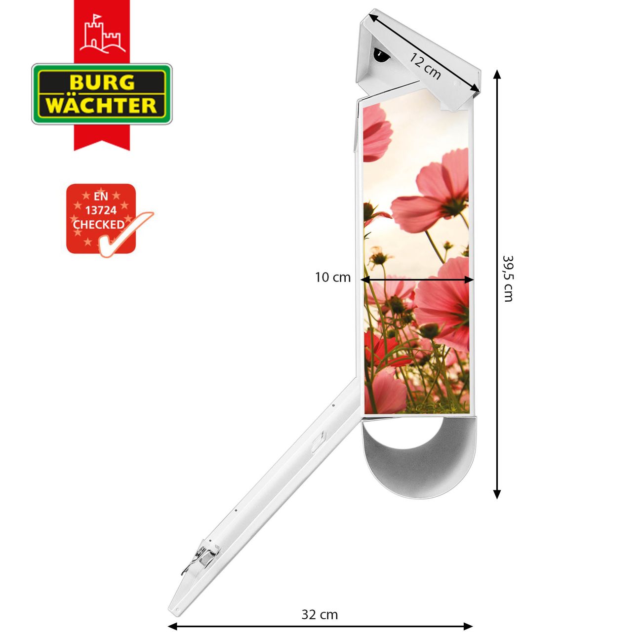 Der BURG-WÄCHTER Stahl Briefkasten mit Schmuckkörbchen Motiv bietet Ihnen mit seinem Fassungsvermögen genügend Platz auch für große A4 Sendungen und Zeitschriften. Das integrierte Regendach schützt Ihre Post vor dem Eindringen von Regen.