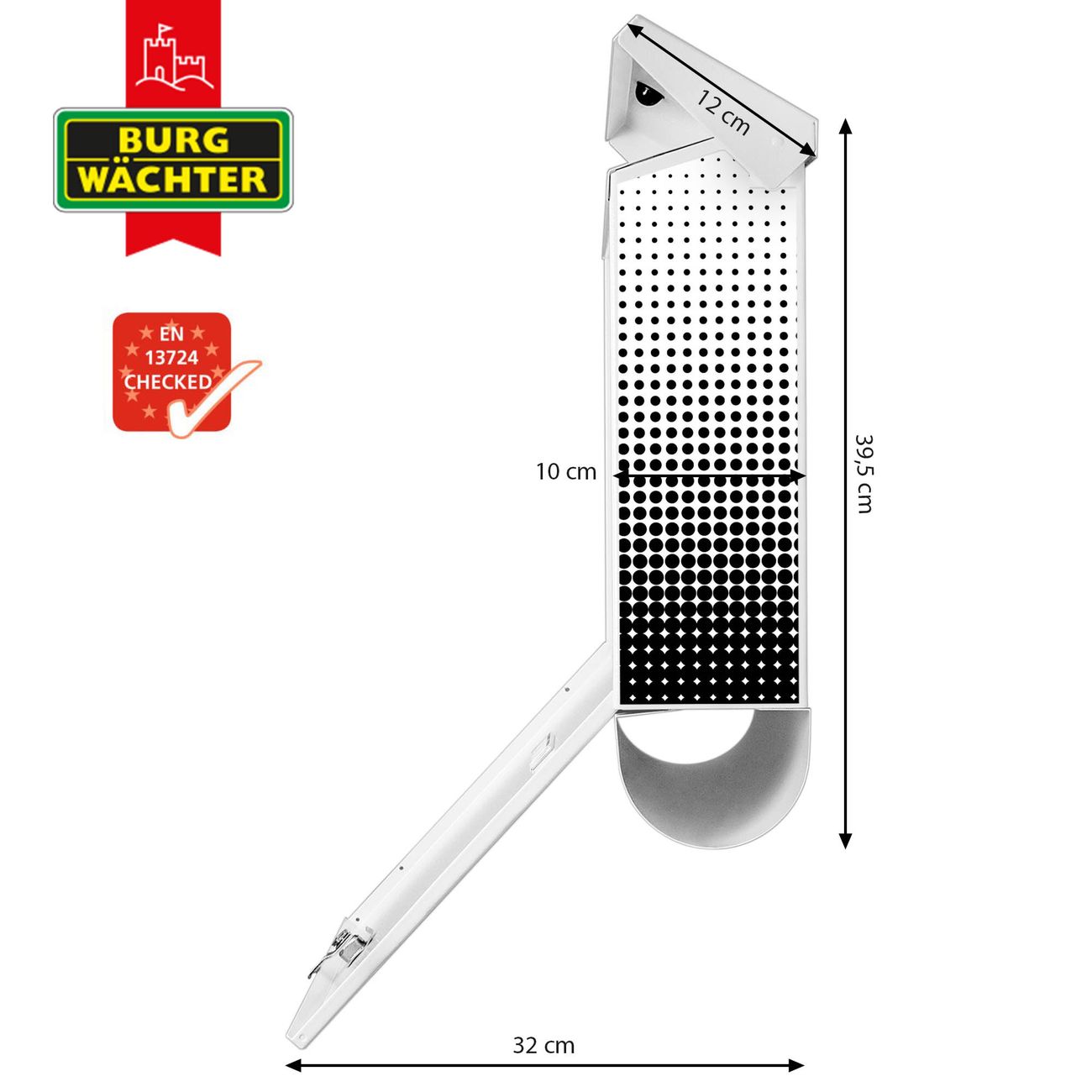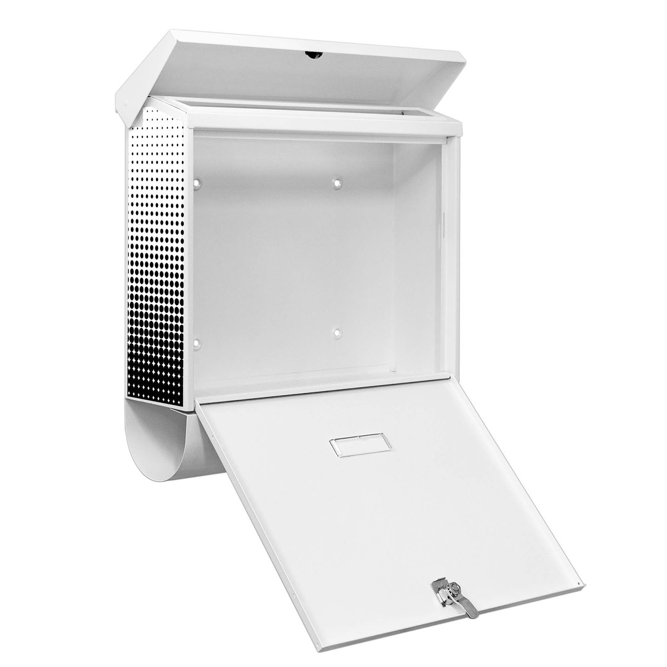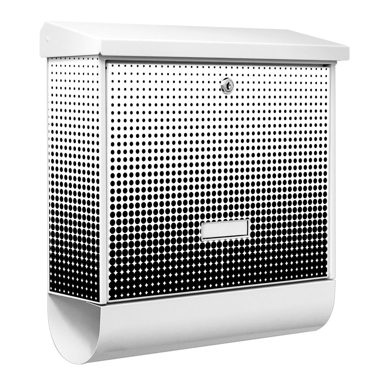 Der BURG-WÄCHTER Stahl Briefkasten mit Schwarz Weiß Motiv bietet Ihnen mit seinem Fassungsvermögen genügend Platz auch für große A4 Sendungen und Zeitschriften. Das integrierte Regendach schützt Ihre Post vor dem Eindringen von Regen.