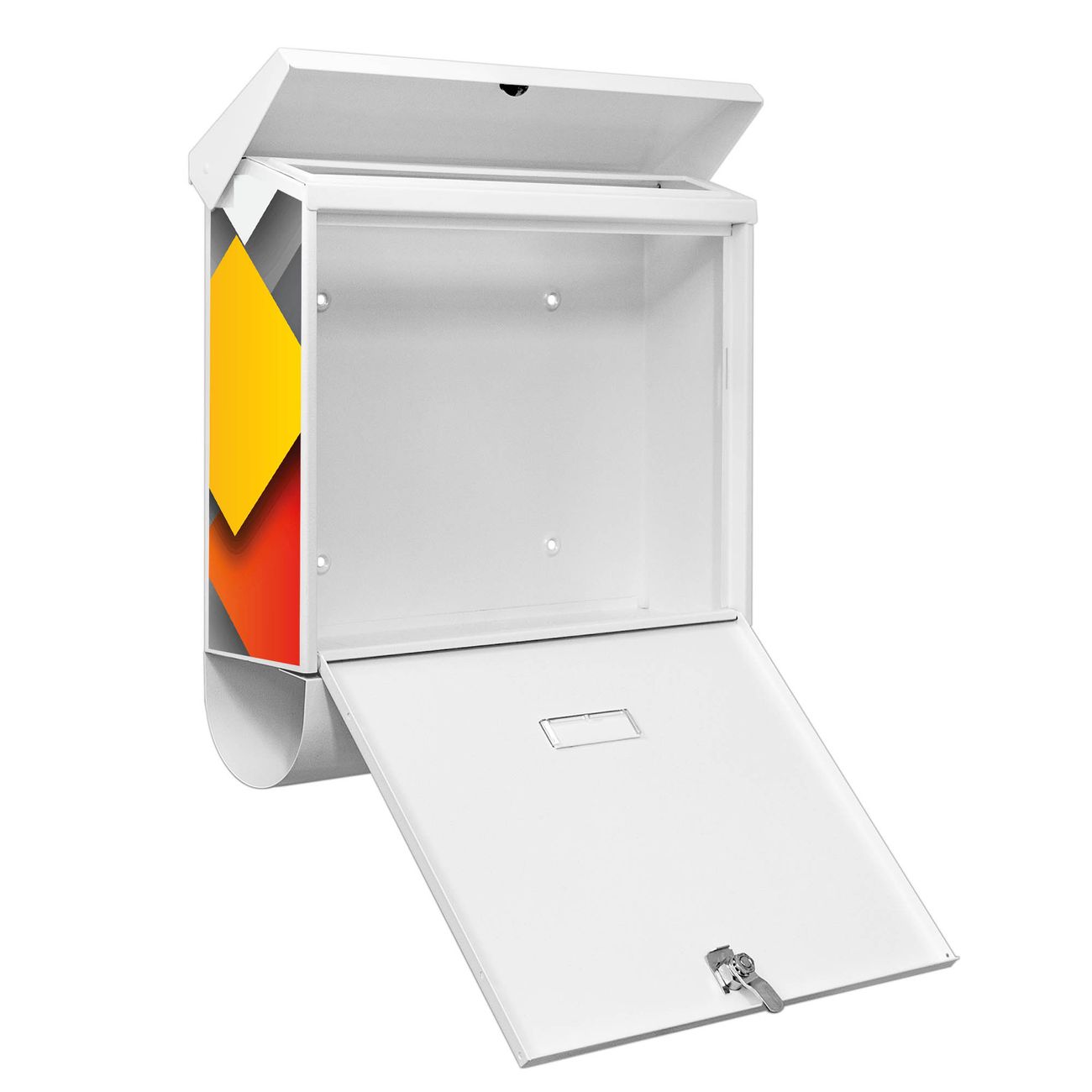 Der BURG-WÄCHTER Stahl Briefkasten mit Schwebende Quadrate Motiv bietet Ihnen mit seinem Fassungsvermögen genügend Platz auch für große A4 Sendungen und Zeitschriften. Das integrierte Regendach schützt Ihre Post vor dem Eindringen von Regen.