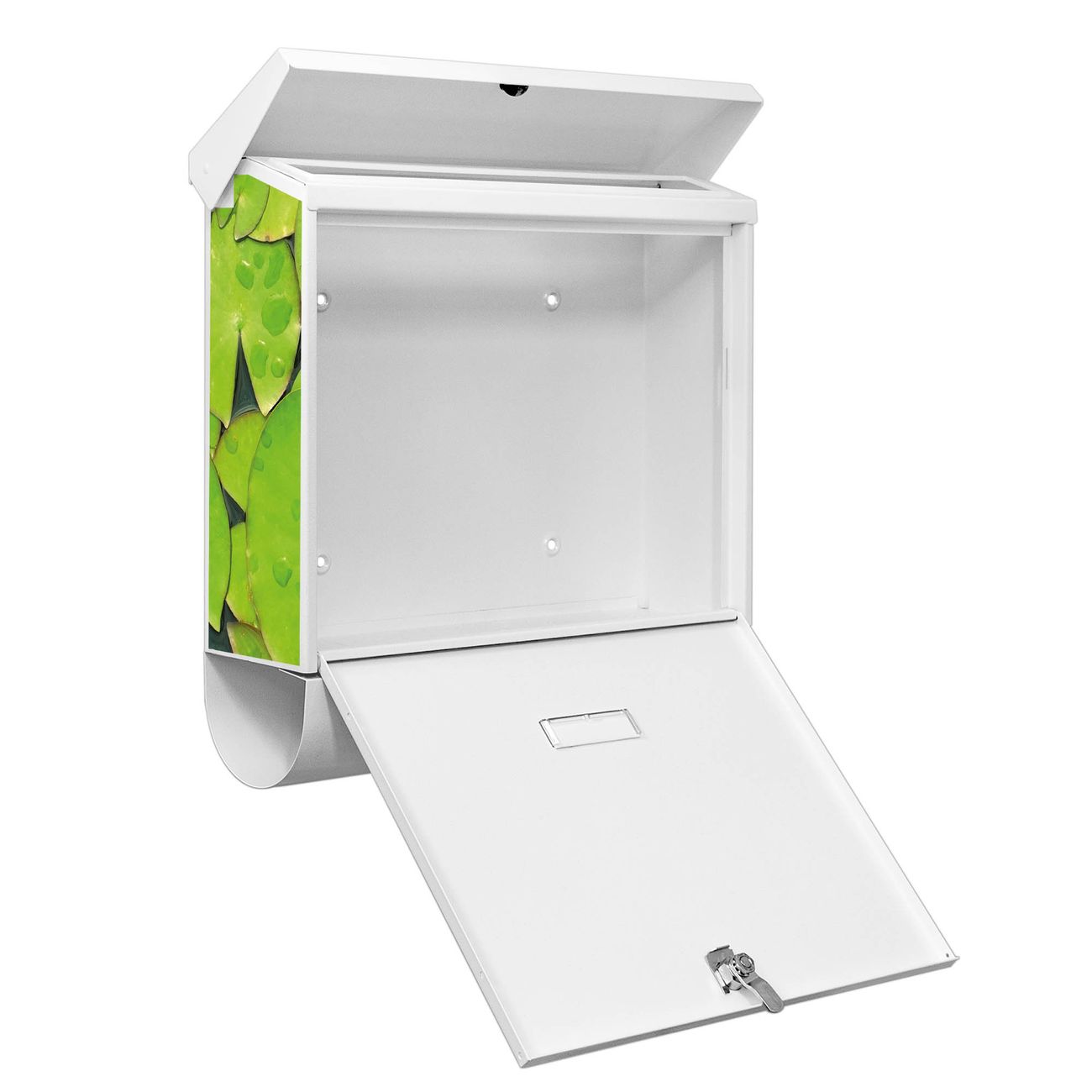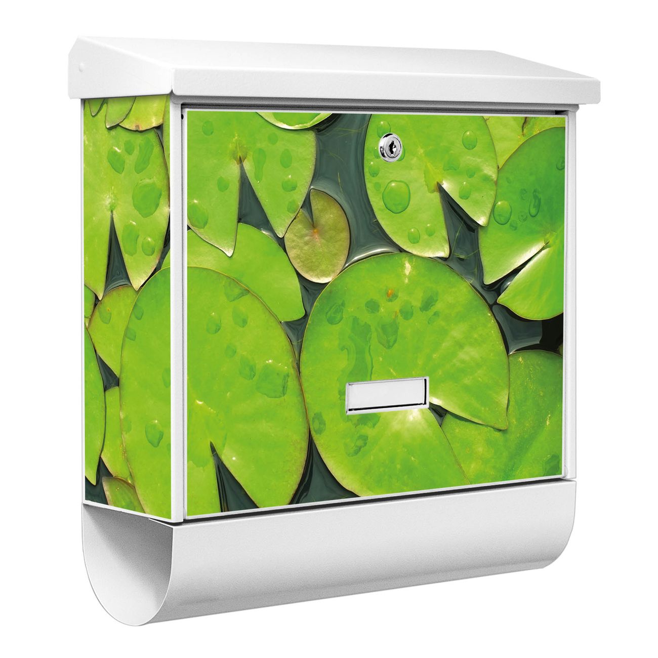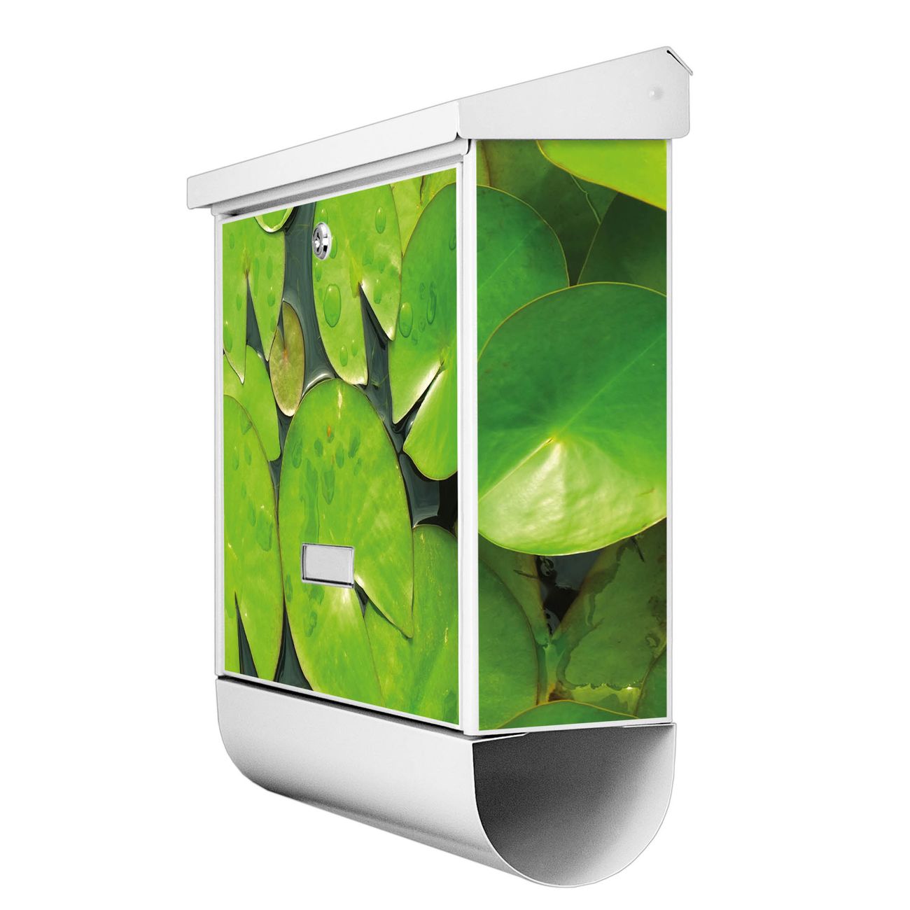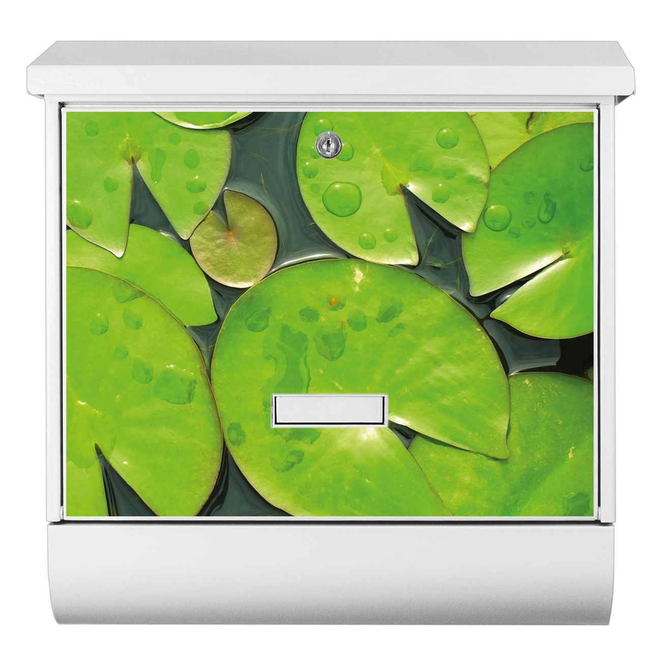 Der BURG-WÄCHTER Stahl Briefkasten mit Seerosenblätter Motiv bietet Ihnen mit seinem Fassungsvermögen genügend Platz auch für große A4 Sendungen und Zeitschriften. Das integrierte Regendach schützt Ihre Post vor dem Eindringen von Regen.