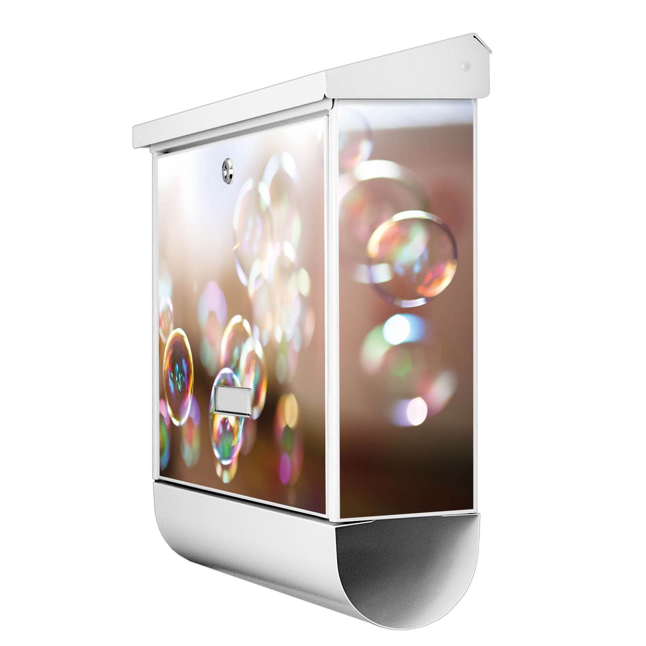 Der BURG-WÄCHTER Stahl Briefkasten mit Seifenblasen Motiv bietet Ihnen mit seinem Fassungsvermögen genügend Platz auch für große A4 Sendungen und Zeitschriften. Das integrierte Regendach schützt Ihre Post vor dem Eindringen von Regen.
