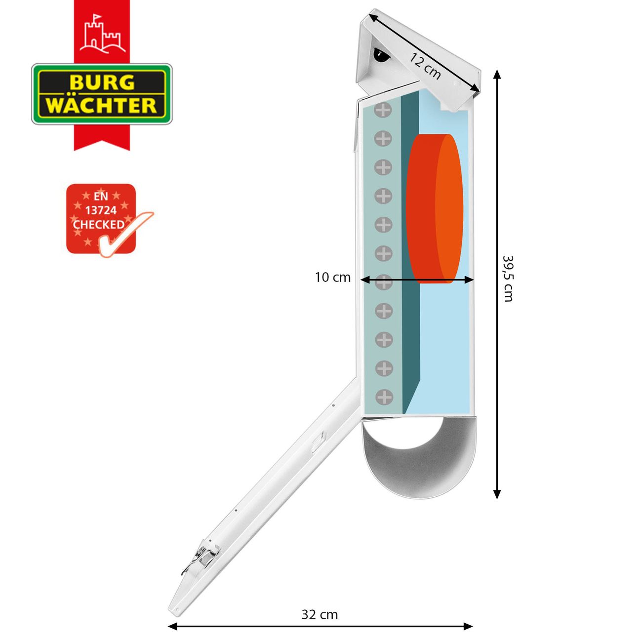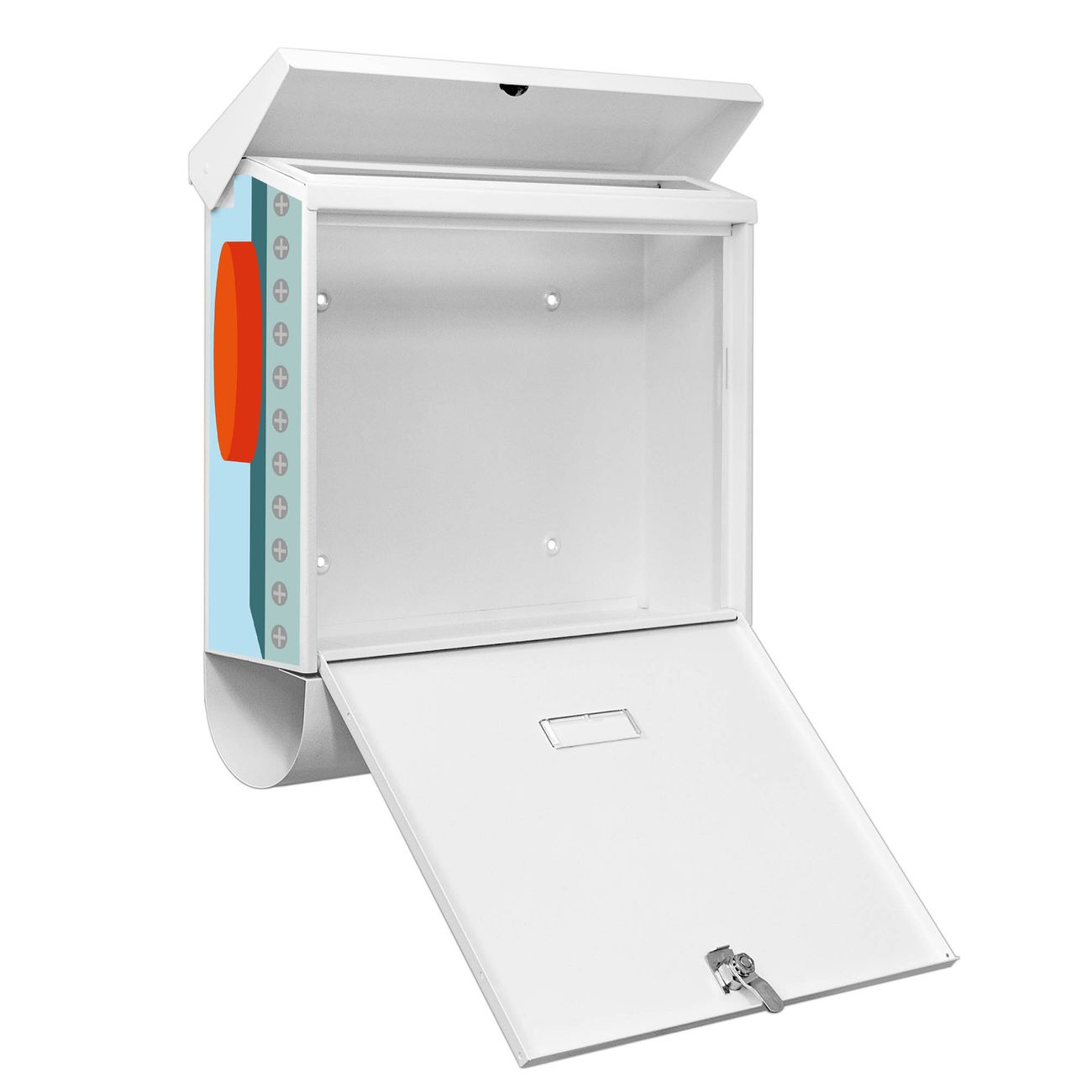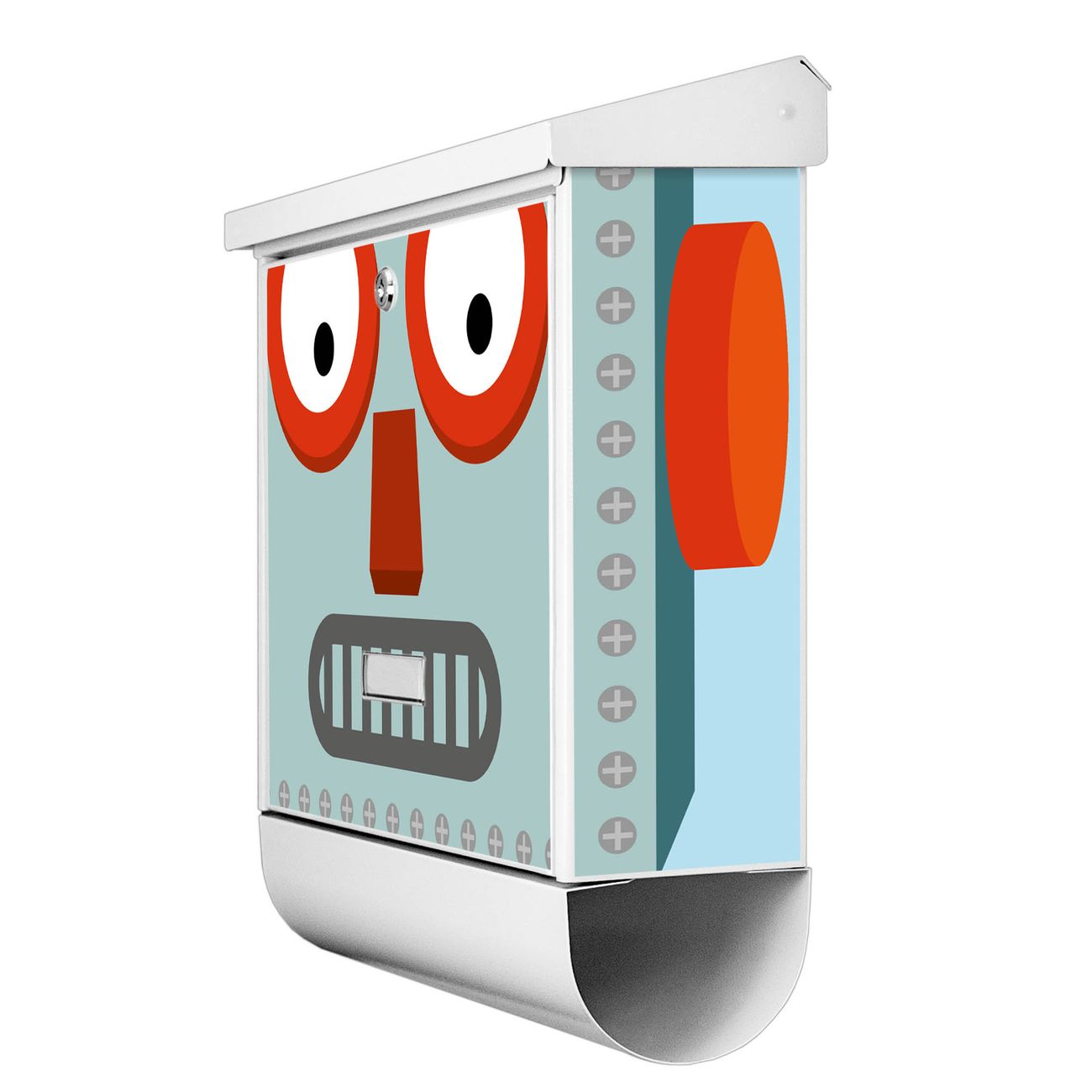 Der BURG-WÄCHTER Stahl Briefkasten mit Shocked Robot Motiv bietet Ihnen mit seinem Fassungsvermögen genügend Platz auch für große A4 Sendungen und Zeitschriften. Das integrierte Regendach schützt Ihre Post vor dem Eindringen von Regen.