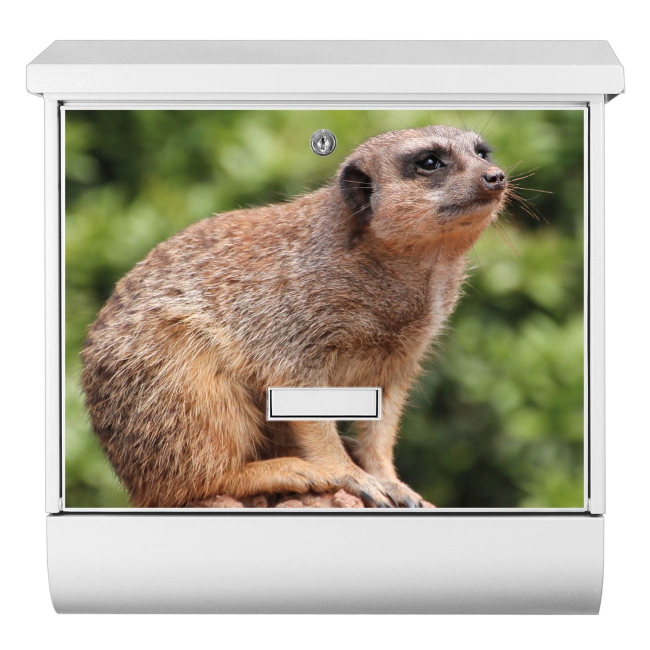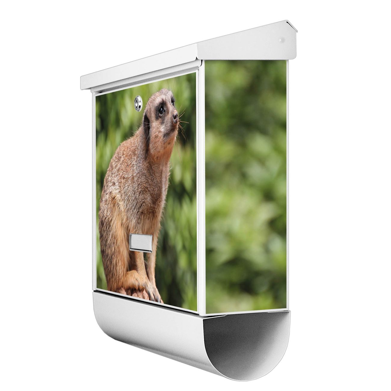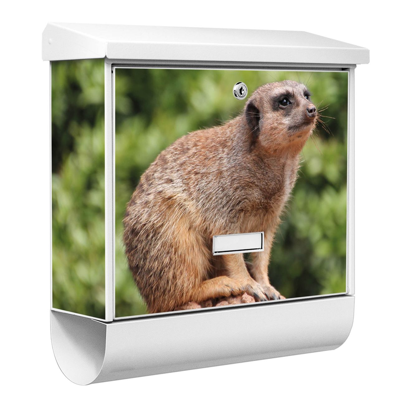 Der BURG-WÄCHTER Stahl Briefkasten mit Sitzendes Erdmännchen Motiv bietet Ihnen mit seinem Fassungsvermögen genügend Platz auch für große A4 Sendungen und Zeitschriften. Das integrierte Regendach schützt Ihre Post vor dem Eindringen von Regen.