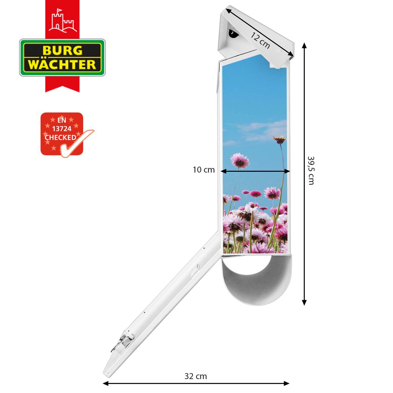 Der BURG-WÄCHTER Stahl Briefkasten mit Sommerblumen Motiv bietet Ihnen mit seinem Fassungsvermögen genügend Platz auch für große A4 Sendungen und Zeitschriften. Das integrierte Regendach schützt Ihre Post vor dem Eindringen von Regen.