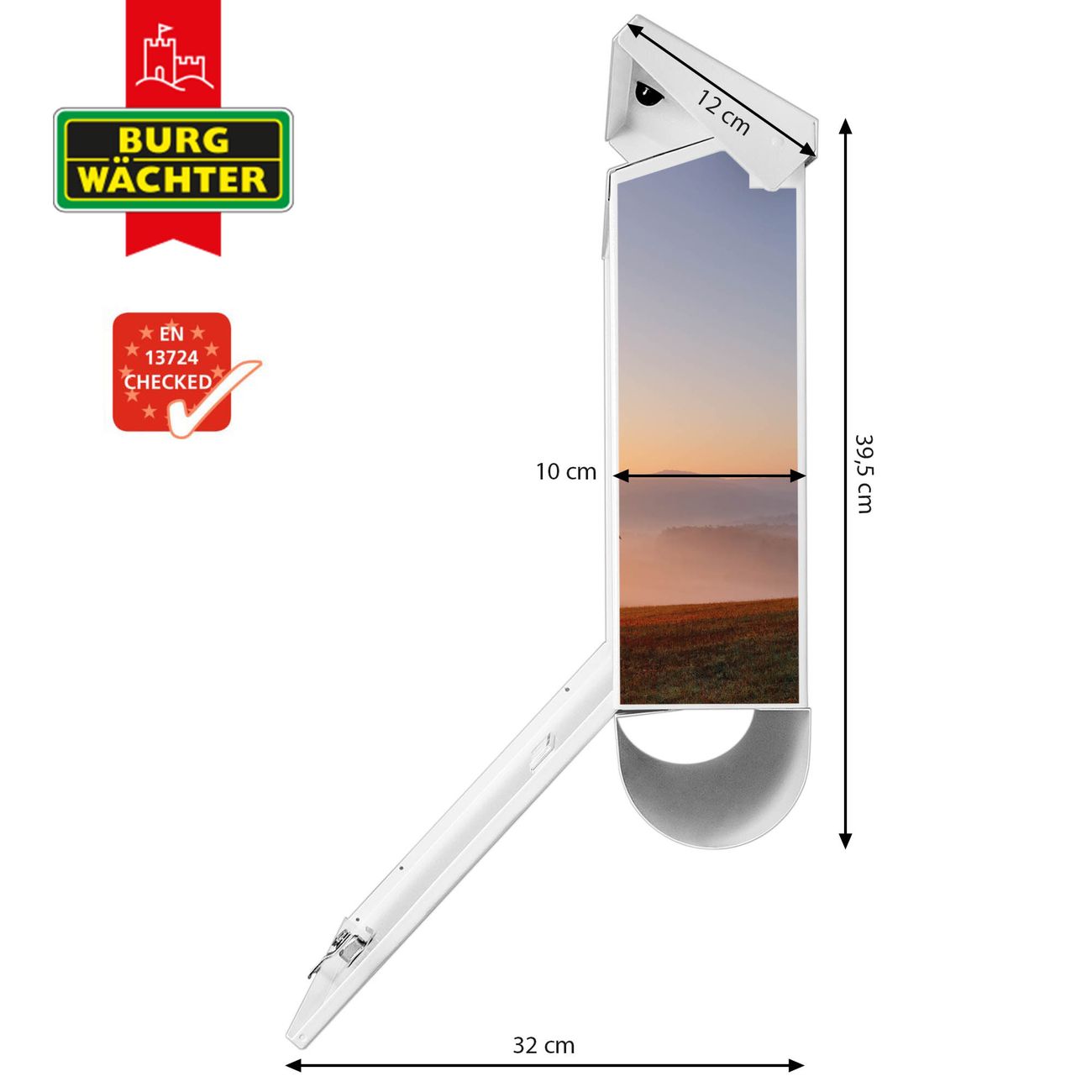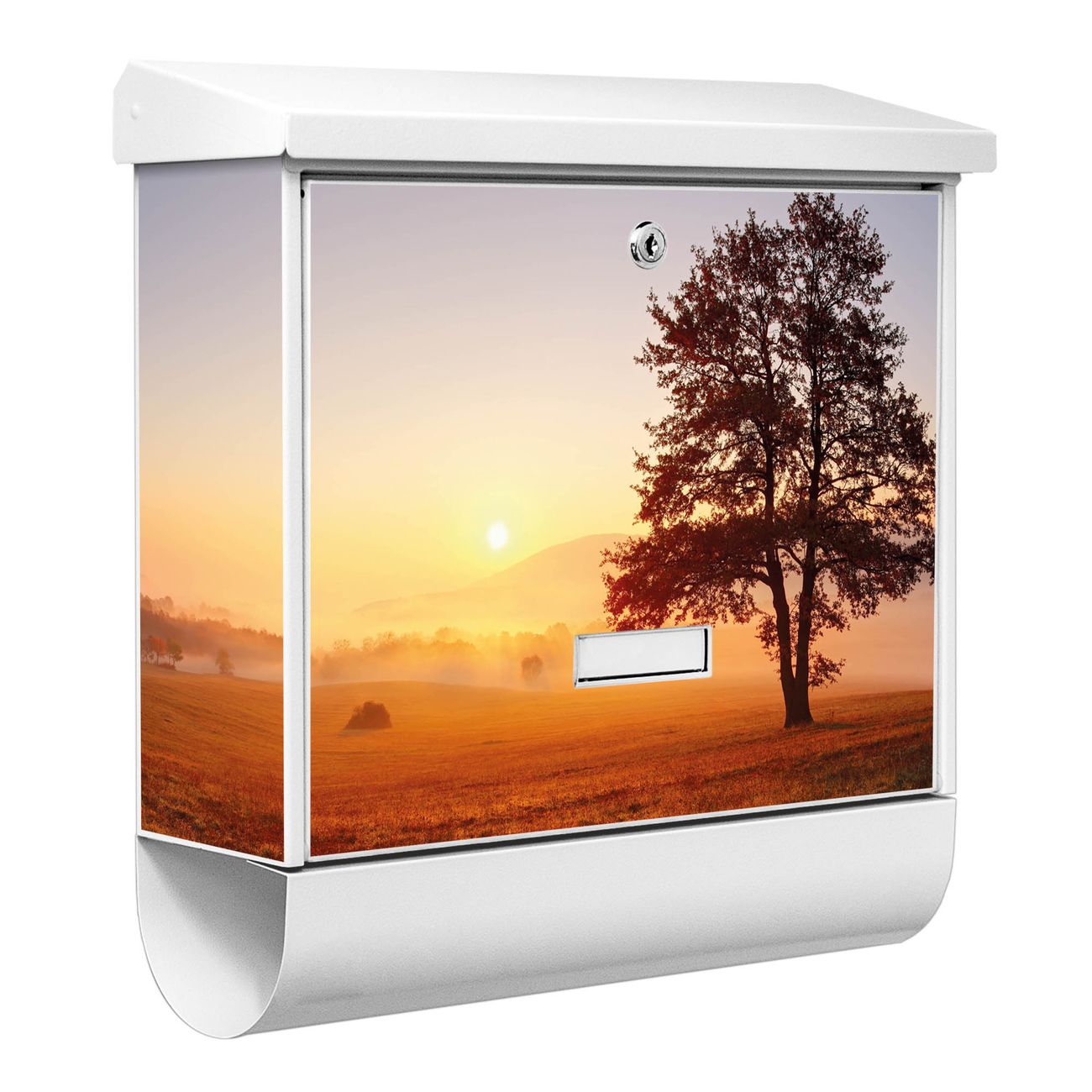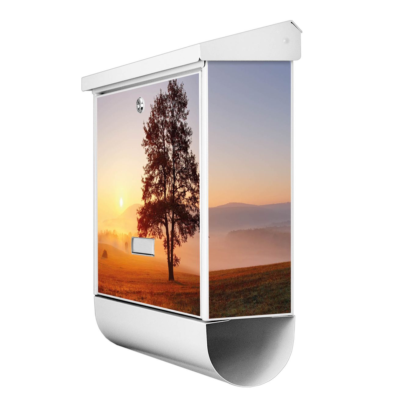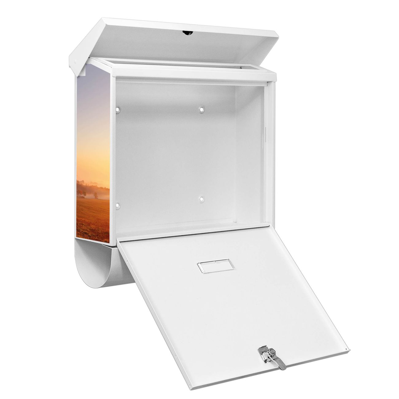 Der BURG-WÄCHTER Stahl Briefkasten mit Sonnenaufgang Motiv bietet Ihnen mit seinem Fassungsvermögen genügend Platz auch für große A4 Sendungen und Zeitschriften. Das integrierte Regendach schützt Ihre Post vor dem Eindringen von Regen.