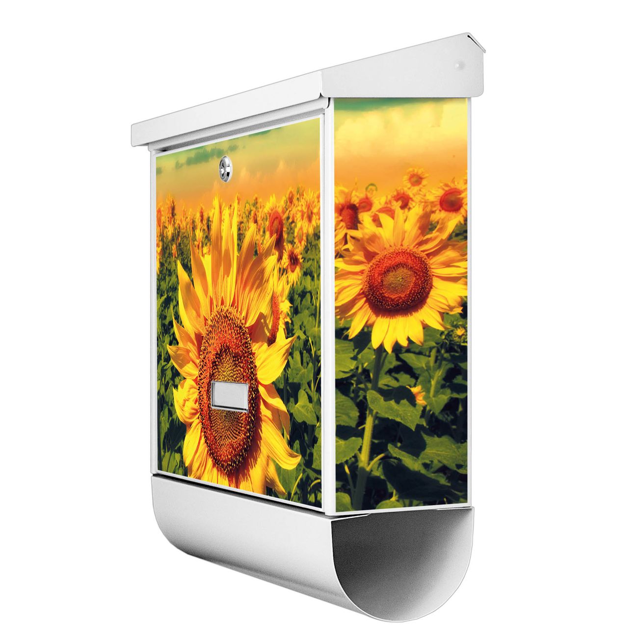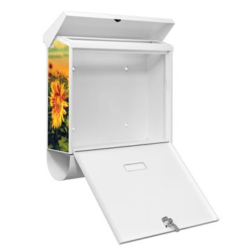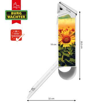 Der BURG-WÄCHTER Stahl Briefkasten mit Sonnenblumen Motiv bietet Ihnen mit seinem Fassungsvermögen genügend Platz auch für große A4 Sendungen und Zeitschriften. Das integrierte Regendach schützt Ihre Post vor dem Eindringen von Regen.