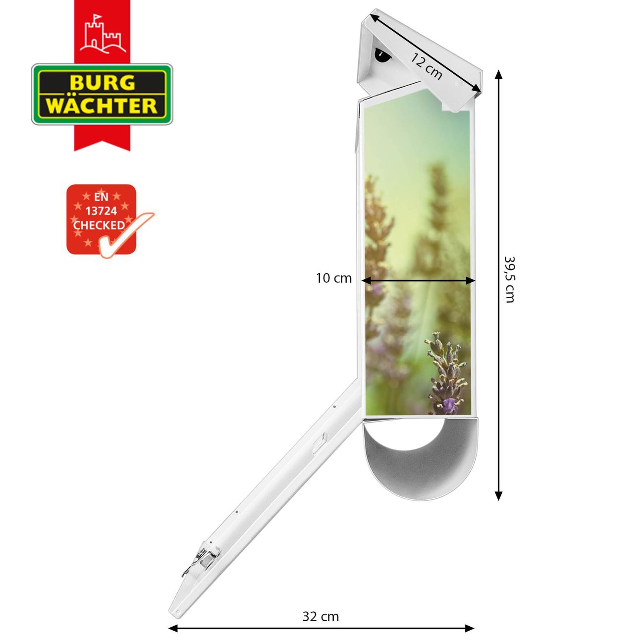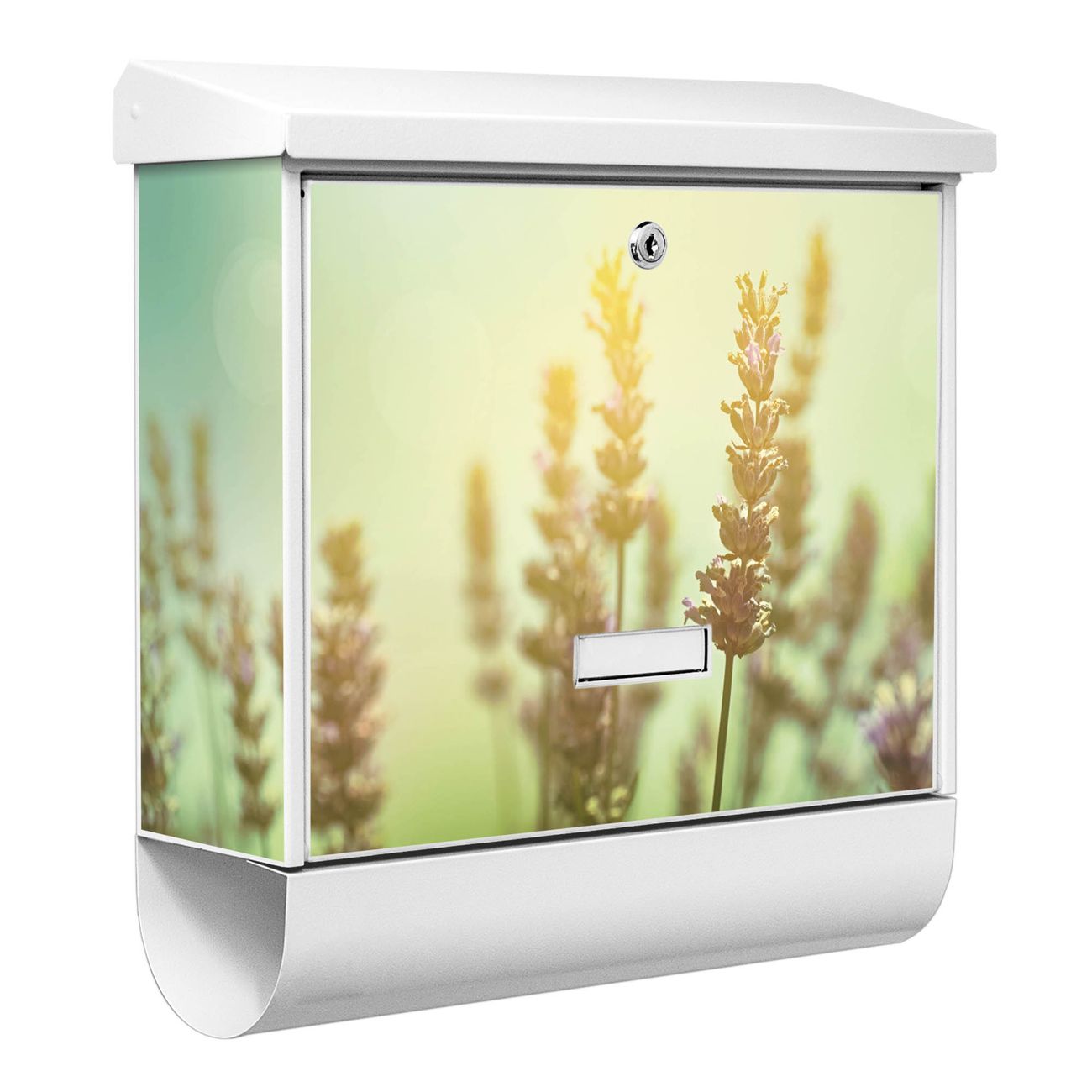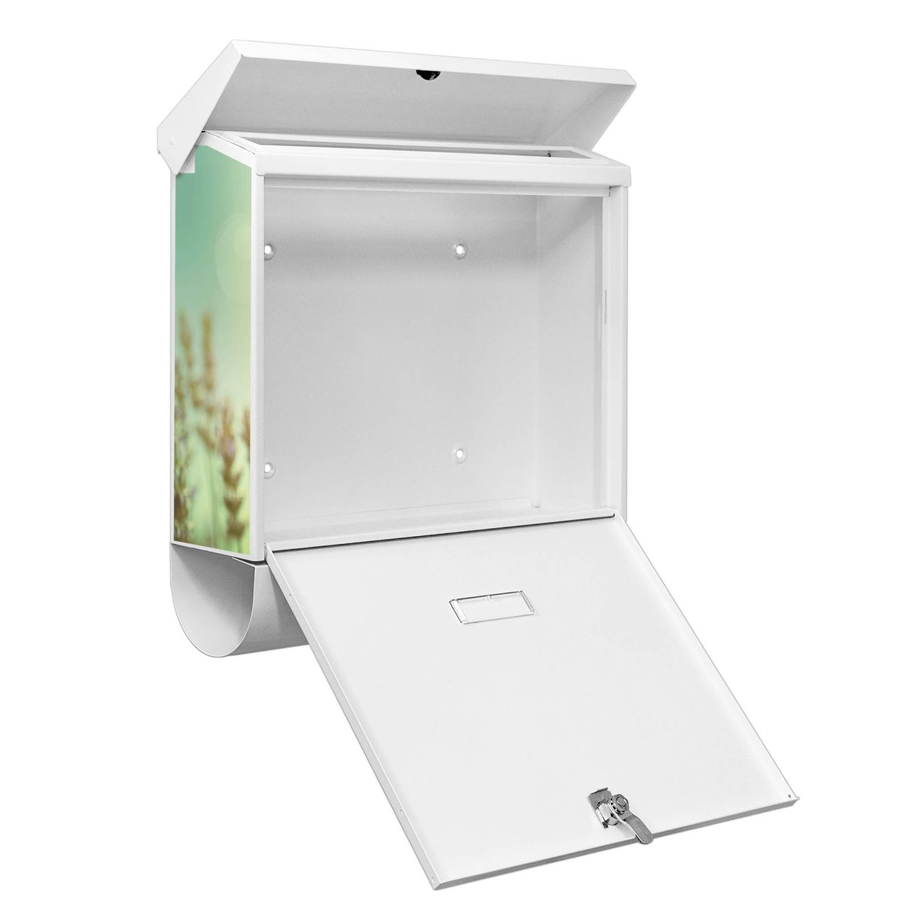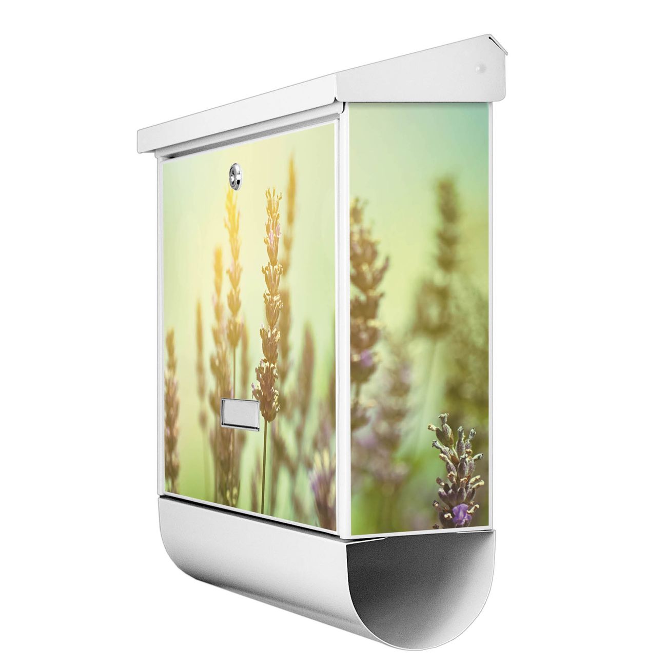 Der BURG-WÄCHTER Stahl Briefkasten mit Sonnenlavendel Motiv bietet Ihnen mit seinem Fassungsvermögen genügend Platz auch für große A4 Sendungen und Zeitschriften. Das integrierte Regendach schützt Ihre Post vor dem Eindringen von Regen.