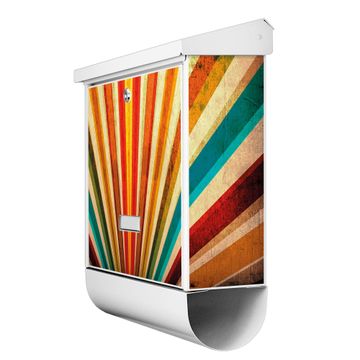 Der BURG-WÄCHTER Stahl Briefkasten mit Sonnenuntergang Abstrakt Motiv bietet Ihnen mit seinem Fassungsvermögen genügend Platz auch für große A4 Sendungen und Zeitschriften. Das integrierte Regendach schützt Ihre Post vor dem Eindringen von Regen.