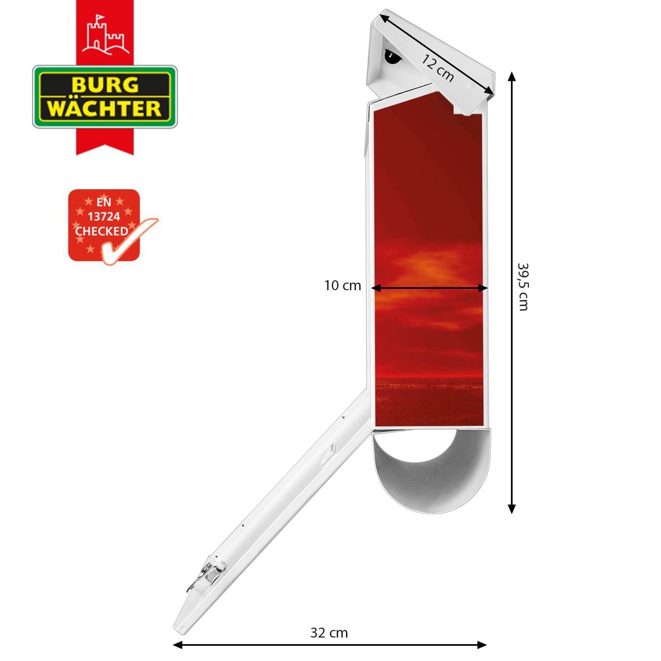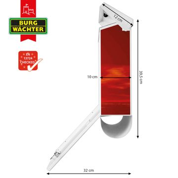 Der BURG-WÄCHTER Stahl Briefkasten mit Sonnenuntergang Motiv bietet Ihnen mit seinem Fassungsvermögen genügend Platz auch für große A4 Sendungen und Zeitschriften. Das integrierte Regendach schützt Ihre Post vor dem Eindringen von Regen.
