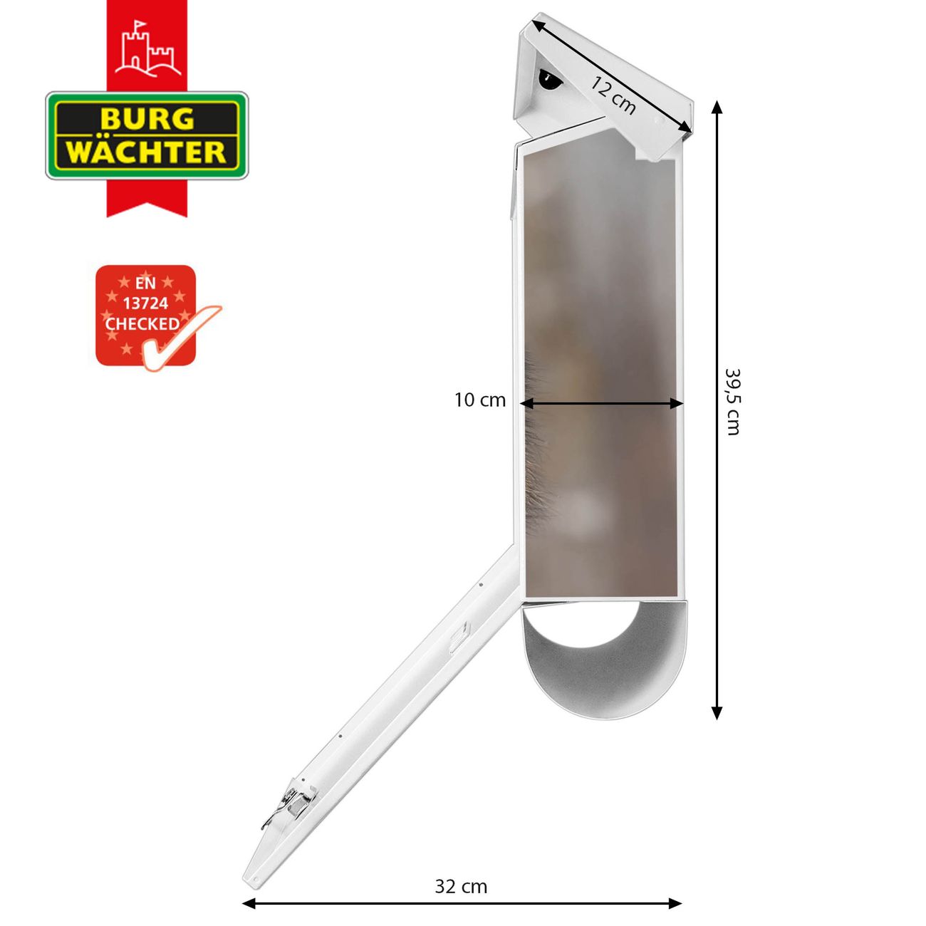Der BURG-WÄCHTER Stahl Briefkasten mit Soraya Motiv bietet Ihnen mit seinem Fassungsvermögen genügend Platz auch für große A4 Sendungen und Zeitschriften. Das integrierte Regendach schützt Ihre Post vor dem Eindringen von Regen.
